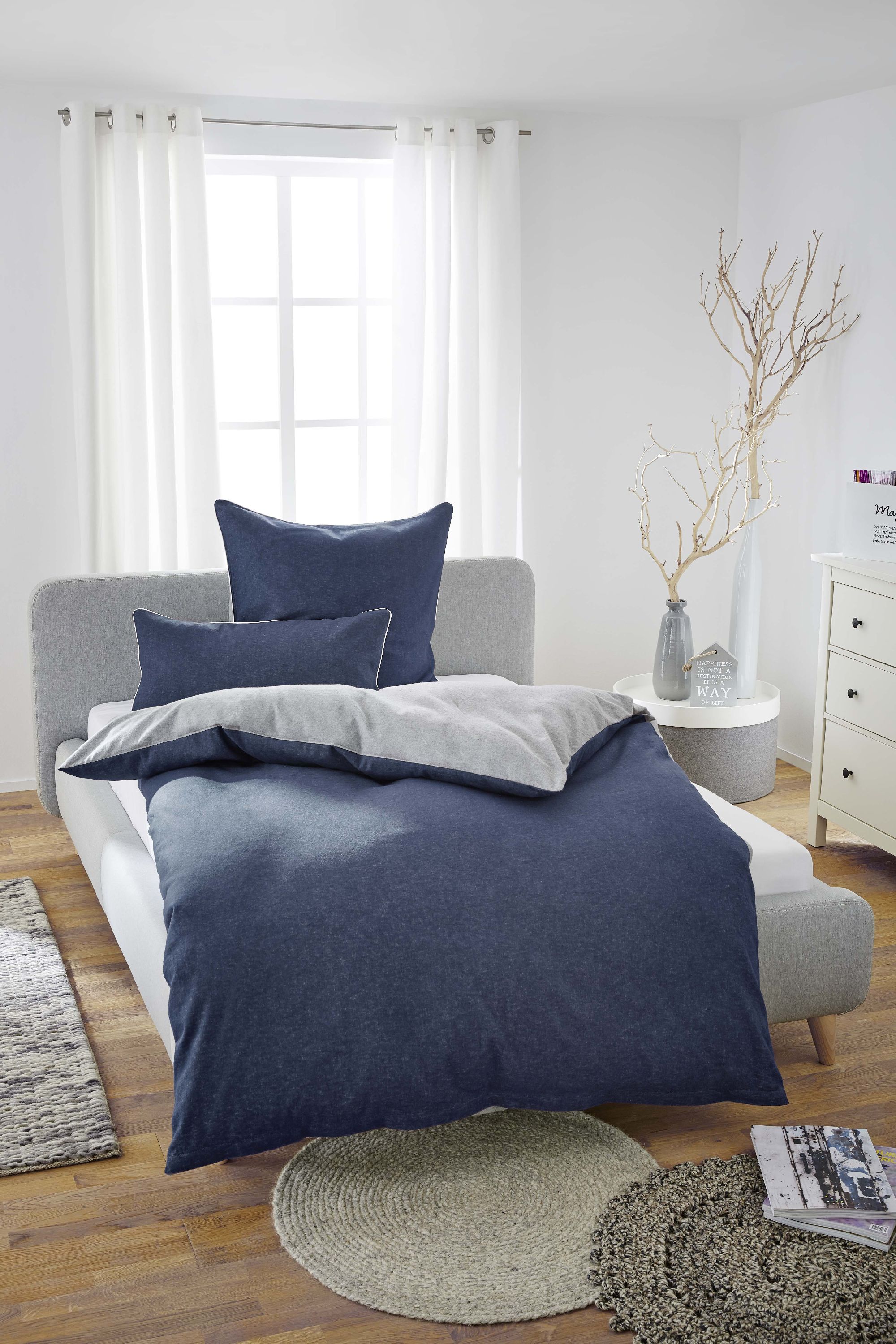 · marine · 100% Baumwolle · Größe Kopfkissen: 80x80cm · mit Reißverschluss · Maschinenwäsche... mehr