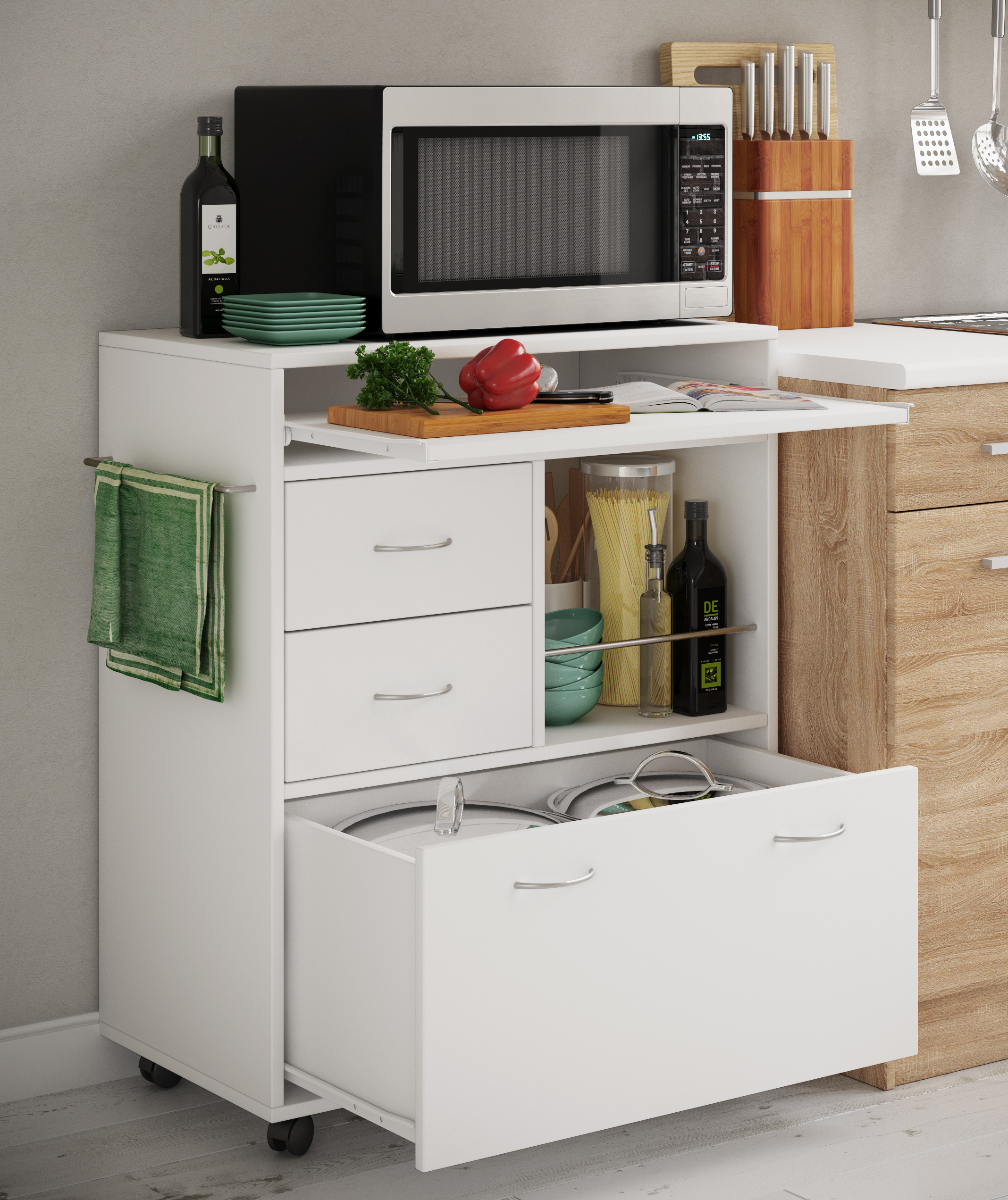 · Praktischer und geräumiger Küchenwagen für ausreichend zusätzlichen Stauraum in Ihrer Küche.