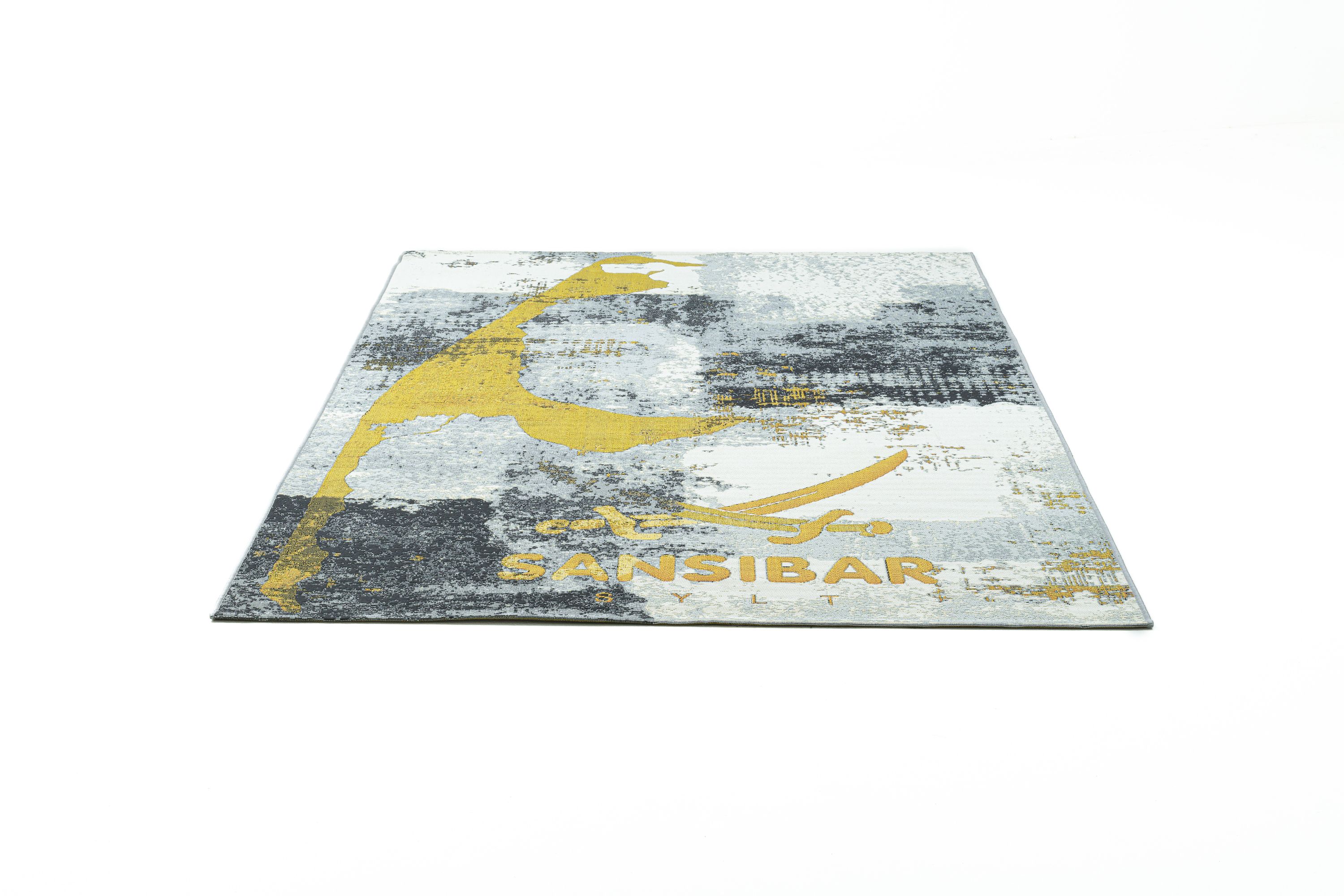 · RANTUM-BEACH - Outdoor / Indoor Teppich der Extraklasse -der gute Laune Teppich für draußen und drinnen Der Artikel RANTUM-BEACH aus der SANSIBAR Kollektion ist ein topaktueller, sehr strapazierfähiger, Outdoor/Indoor-Teppich mit einer farbenfrohen lebensbejahenden Designsprache. Er bringt das berühmte SANSIBAR- Feeling (die Holzhütte am Strand), den herrlichen Nordseestrand mit seinen kreischenden Möwen, das komplette Syltflair (“Urlaub, Freizeit und Glück“) auf Ihre Terrasse, in Ihren Garten, in Ihr Wohn-und Esszimmer. Selbst als Küchen- oder Kinderzimmerteppich eignet sich diese robuste Qualität. Beachten Sie auch die Größe 100 x 200 cm, der ideale Strandteppich. Ein “gute Laune Teppich“ für alle Lebensräume! Hergestellt aus hochwertigem schadstoffgeprüftem Polypropylen und Polyester Fasern hält dieses kurze Flachgewebe auch der größten Beanspruchung stand und erfreut Sie jahrelang mit einem makellosen Aussehen. Die verwendeten sehr widerstandsfähigen Synthetik Fasern bringen noch weitere hervorragende Nutzungseigenschaften mit sich, wie die Feuchtigkeits- und UV-Strahlen Resistenz. Diese Kombination von Material und Nutzungseigenschaften macht diesen Teppich zu einem einzigartigen Allrounder in ihrem Innen- und Outdoor- Wohnbereich. Die meisten Flecken lassen sich leicht mit einem feuchten Tuch entfernen und bei hartnäckigen Flecken greifen Sie einfach zu einem handelsüblichen Teppichschaum. Das verarbeitete Material trocknet bei Nässe schnell wieder aus, ohne sich zu verfärben oder gar abzufärben, was selbstverständlich für die Farbechtheit dieses Produktes steht. Auch in Räumen mit Fußbodenheizung kann dieser Teppich problemlos ausgelegt werden.