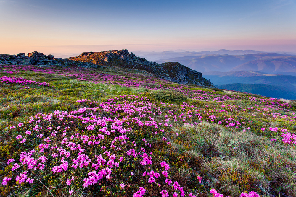 · ALPENLANDSCHAFT MIT LILA BLUMEN