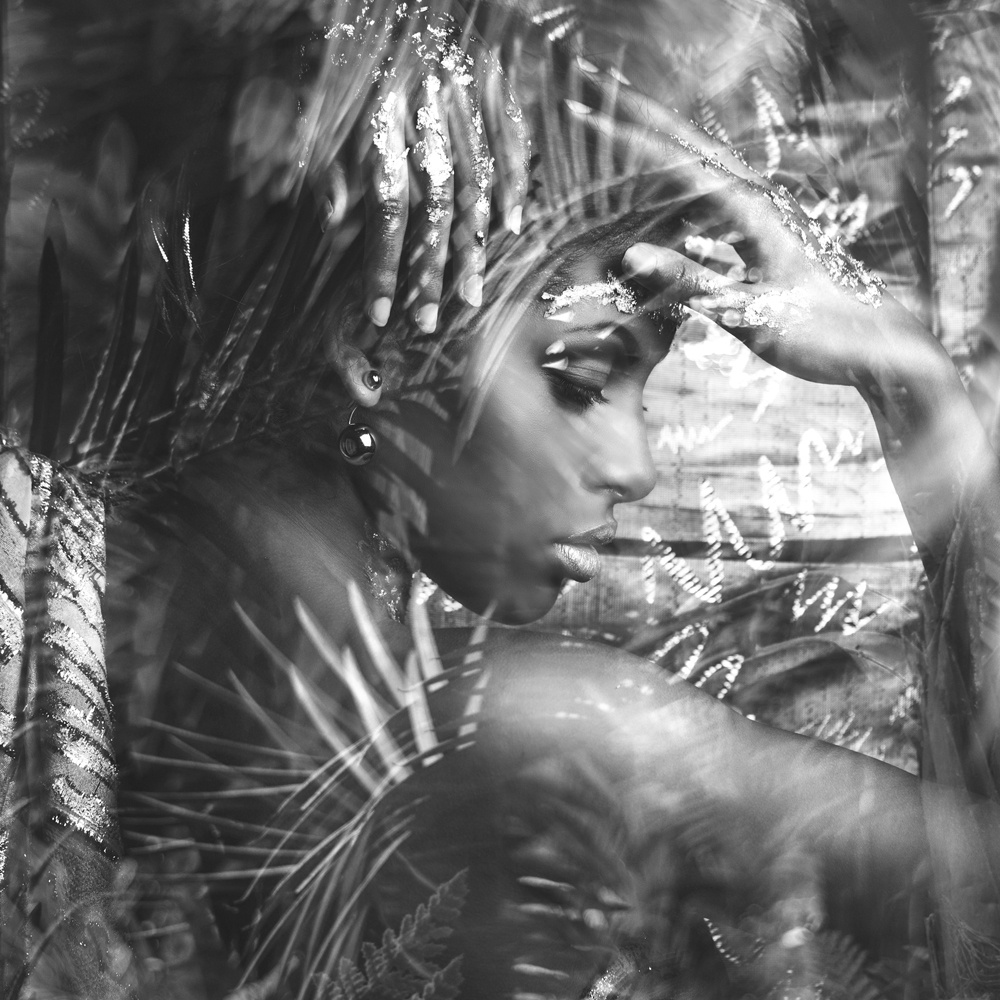 · EXOTISCHE SCHÖNHEIT · schwarz-weiß · Profiltiefe: 4cm · Format: Quardrat · Akustikbilder -... mehr