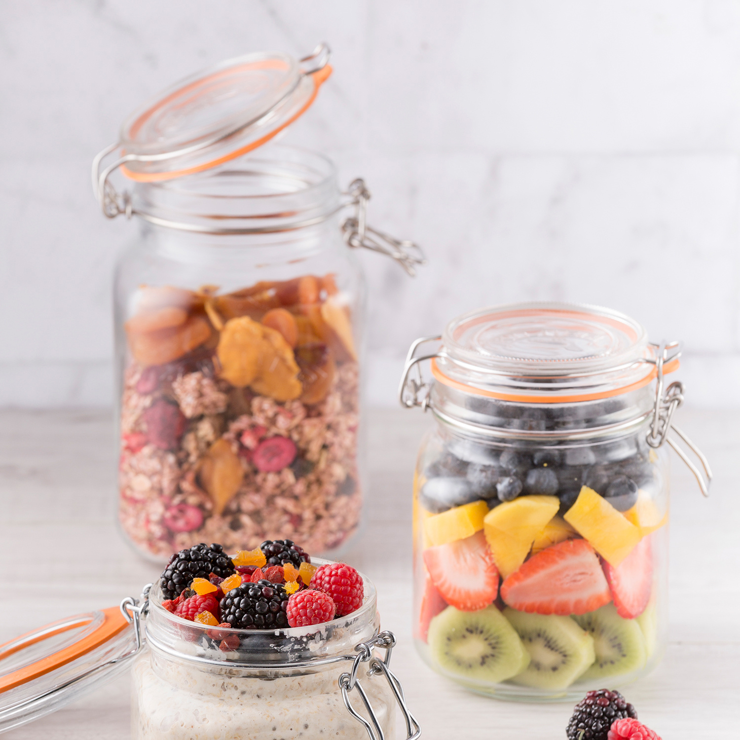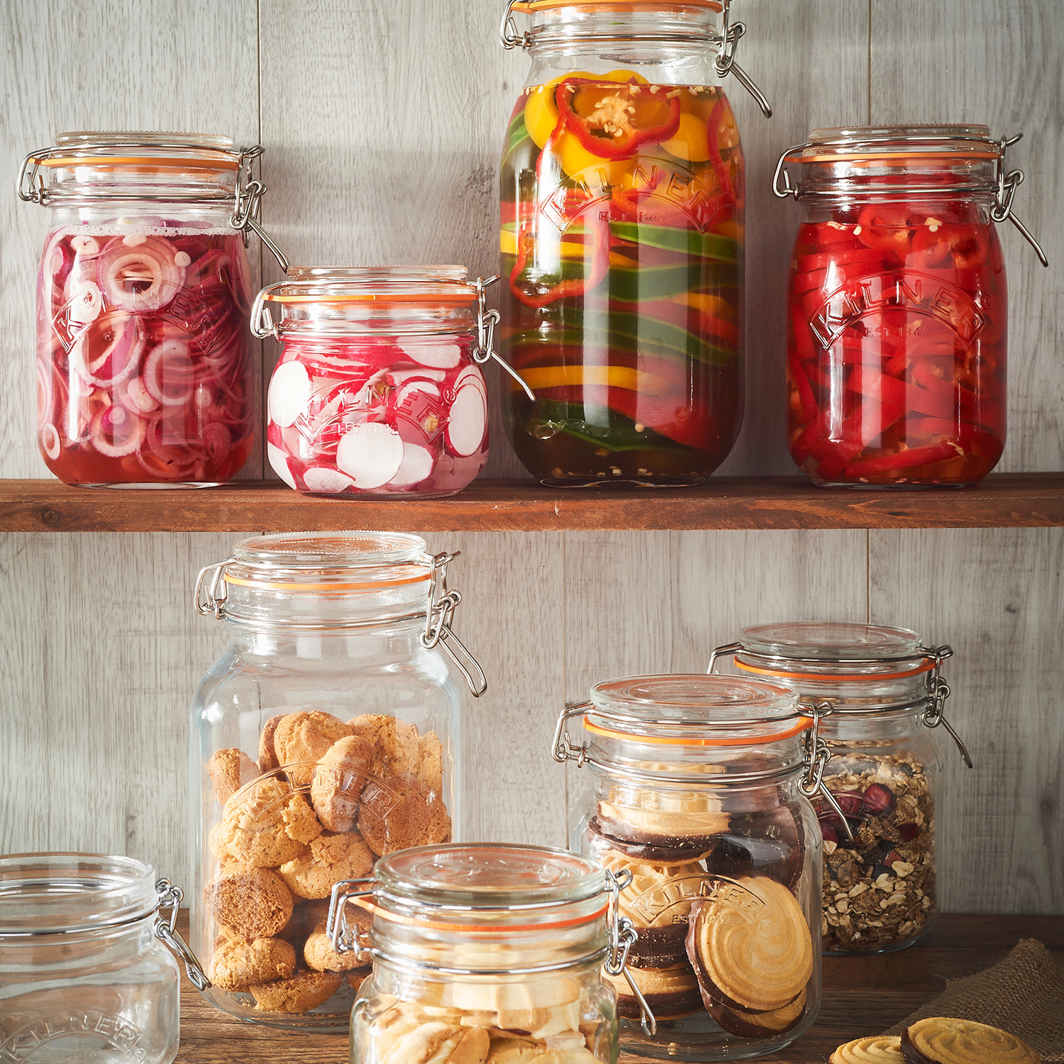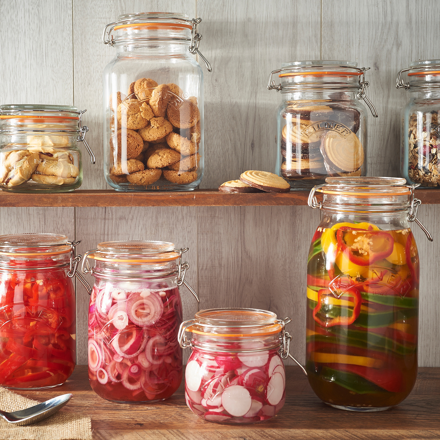 · Seit 1842 hilft das Original Kilner® Glas Generationen, Lebensmittel erfolgreich zu konservieren und zu lagern. Die quadratischen Kilner® Bügelverschluss Gläser eignen sich perfekt für die Konservierung von Obst, Gurken, Marmeladen und anderen Lebensmitteln. Auch sind sie ideal für die Lagerung von trockenen Lebensmitteln wie Reis, Zucker, Mehl und Linsen. Die hochwertigen Bügelverschluss-Gläser von Kilner sind besonders robust, mehrfach verwendbar, vielfältig einsetzbar, nachhaltig und Spülmaschinengeeignet.. Die hochwertigen Glasgefäße halten länger und bewahren Ihre Lebensmittel sicher auf. Glas ist gut für das Essen. Es besteht aus reinen, natürlichen Rohstoffen, es ist frei von BPA, BPS und Phthalaten und überträgt keine Schadstoffe an die Lebensmittel und somit definitiv gesündere Wahl für die Lagerung, Konservierung und auch für den Gebrauch von Lebensmitteln. Der hochwertige Bügelverschluss aus Edelstahl ist so konstruiert, dass er 100% dicht hält und somit den idealen Verschluss bei jedem Mal gewährleistet. Zudem ist Glas nachhaltig, wiederverwendbar und recycelbar. Und somit ein positiver Beitrag für unsere Umwelt. Erhältlich in drei hellen Ausführungen.