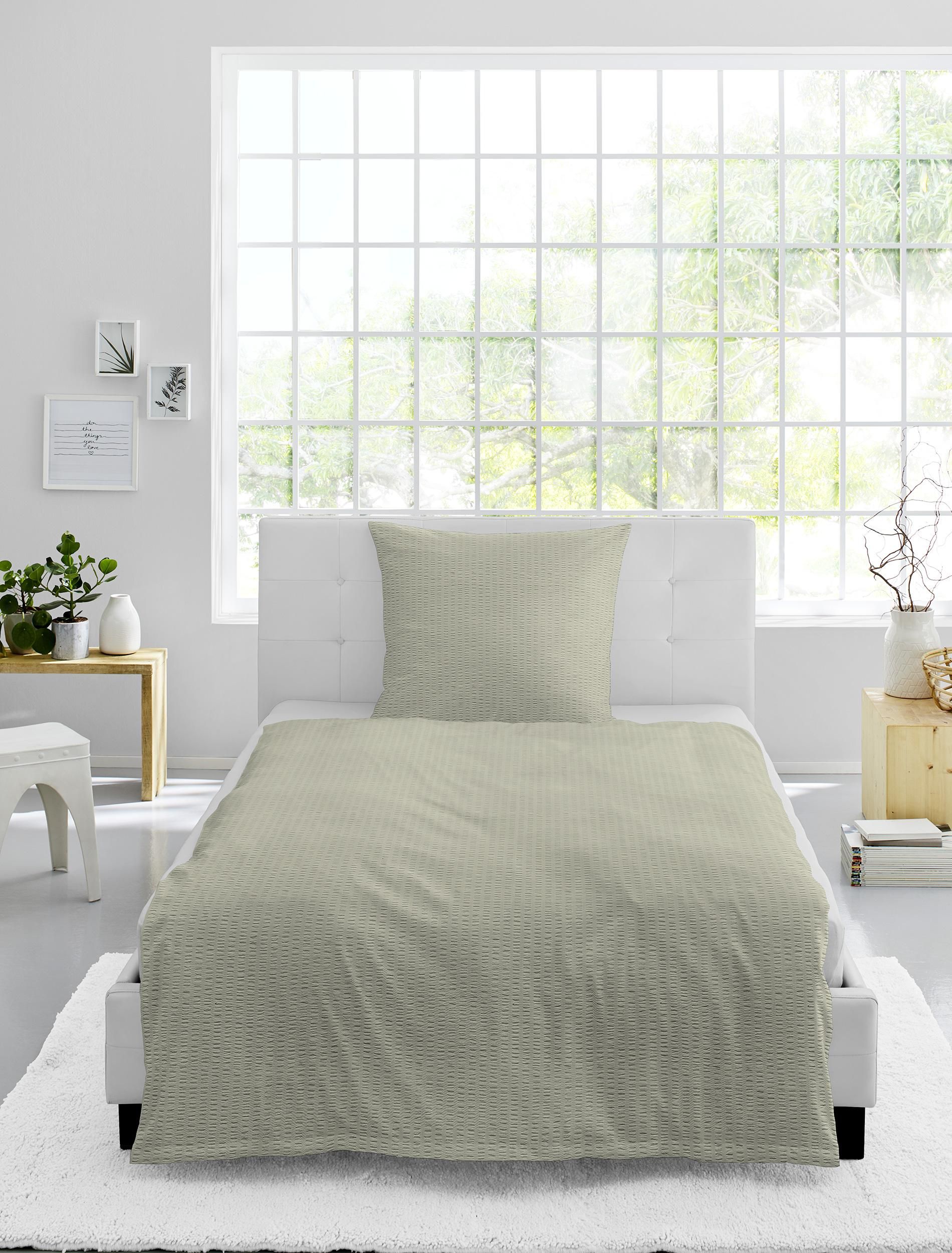 Man sichert sich mit dieser schönen Bettwäsche ein himmlisches Schlaferlebnis. Sie können beim Bettbezug auf die bewährte Qualität der Marke BIERBAUM zählen. Die Bettwäsche-Garnitur ist mit fast jeder Einrichtung kombinierbar, da sie einen tollen Look hat. Sie verbreitet ein wohnliches Flair und macht Ihr Bett zum Zentrum jeden Schlafzimmers. Seersucker aus Baumwollstoff kommt als Material zum Einsatz. Ein guter Schlaf ist die Basis für einen erfolgreichen Start in den Tag – und das zu jeder Jahreszeit. Das Bettwäsche-Set hat ein Längenmaß von 220 Zentimetern sowie eine Breite von insgesamt 155 Zentimetern. Sie schlafen dank dieses himmlischen Bettbezuges ruhig ein – wie auf einer Wolke.