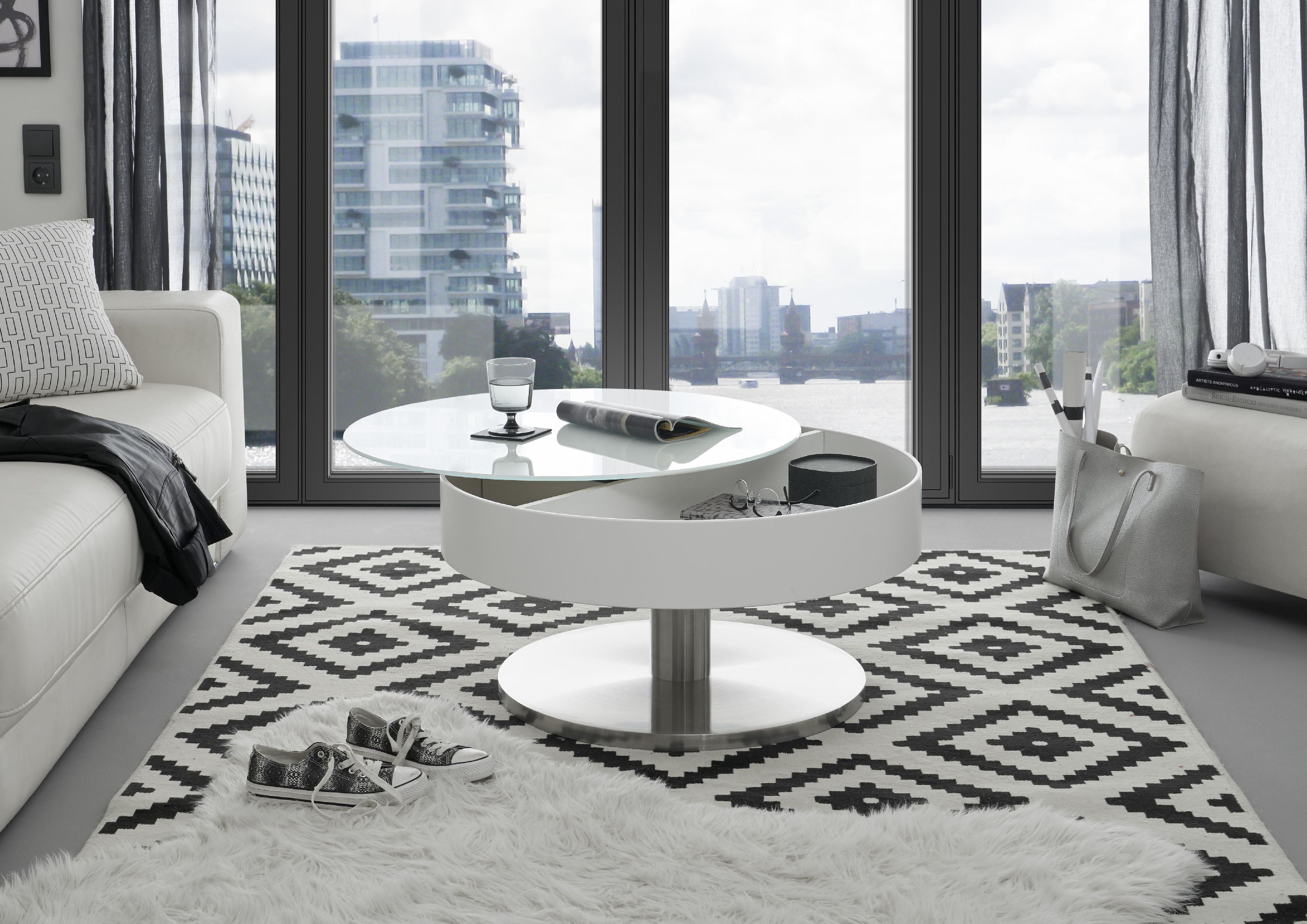 · Farbbezeichnung: Glas weiß / Edelstahl-Optik · Anzahl Fächer: 1 Stück · Tischplatte... mehr