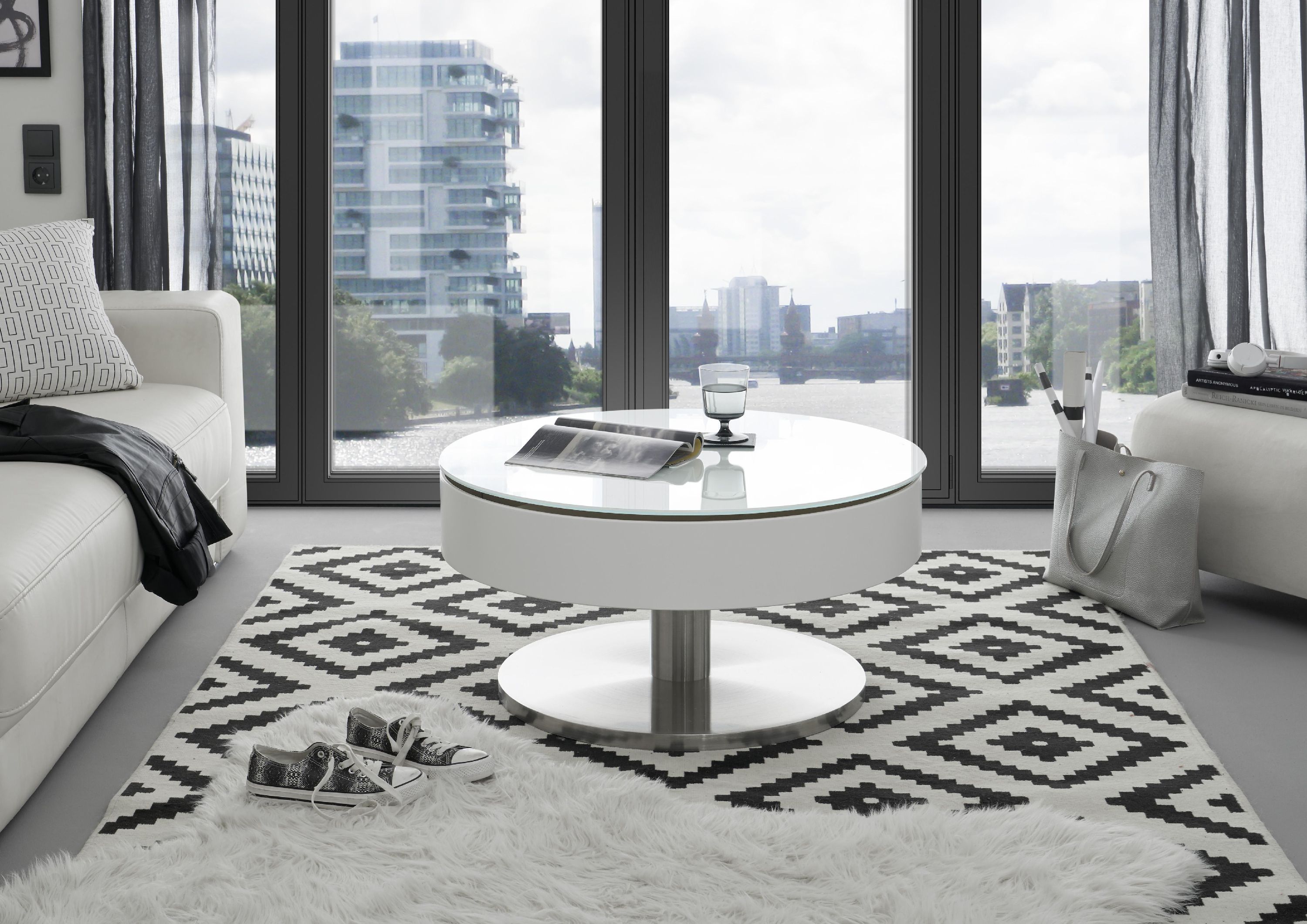 · Farbbezeichnung: Glas weiß / Edelstahl-Optik