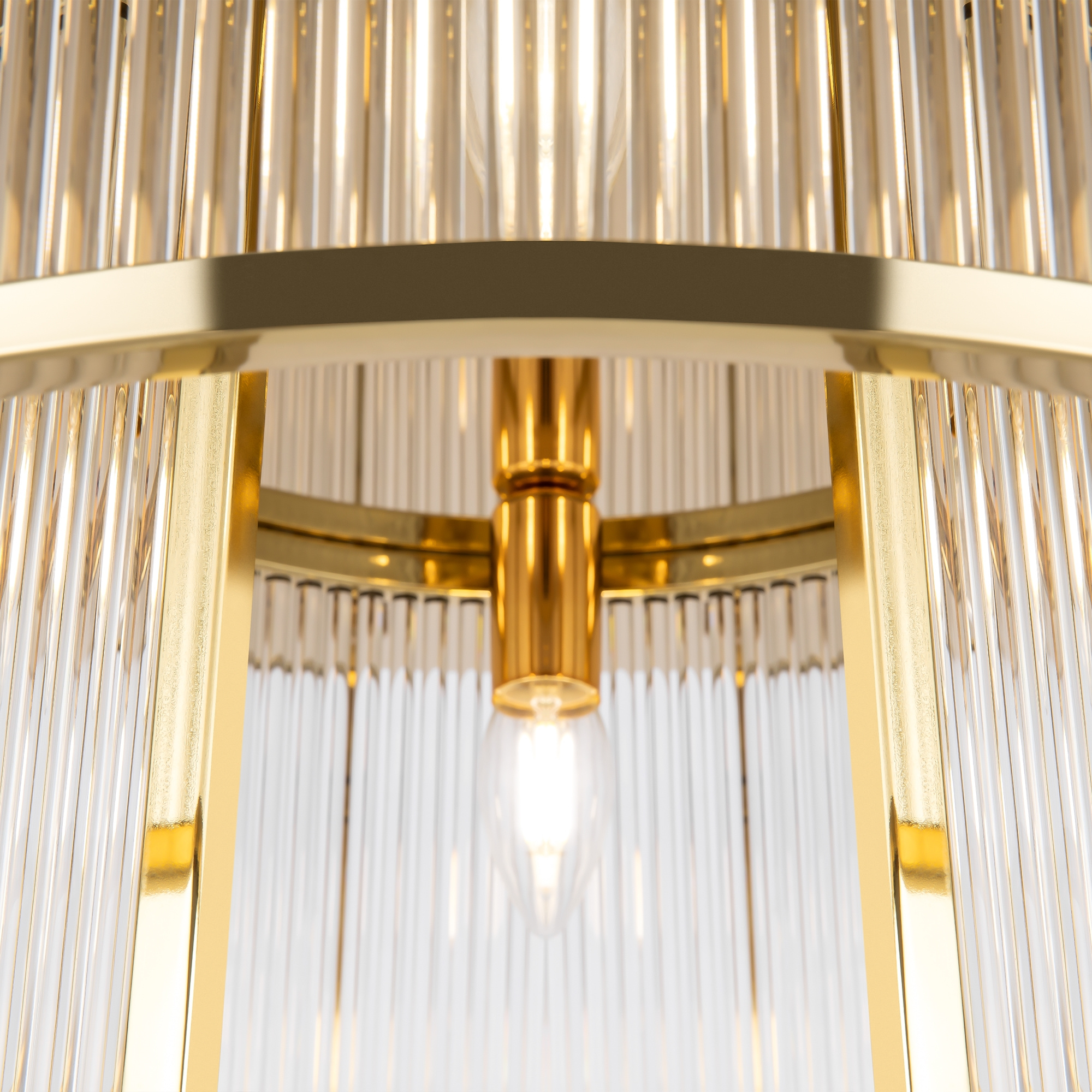 · Material der Beschläge - Metall, Farbton - Gold. Dekoratives Element aus transparentem Glas in Form von geprägten Röhren. E14-Fassung. Lampen nicht im Lieferumfang enthalten.