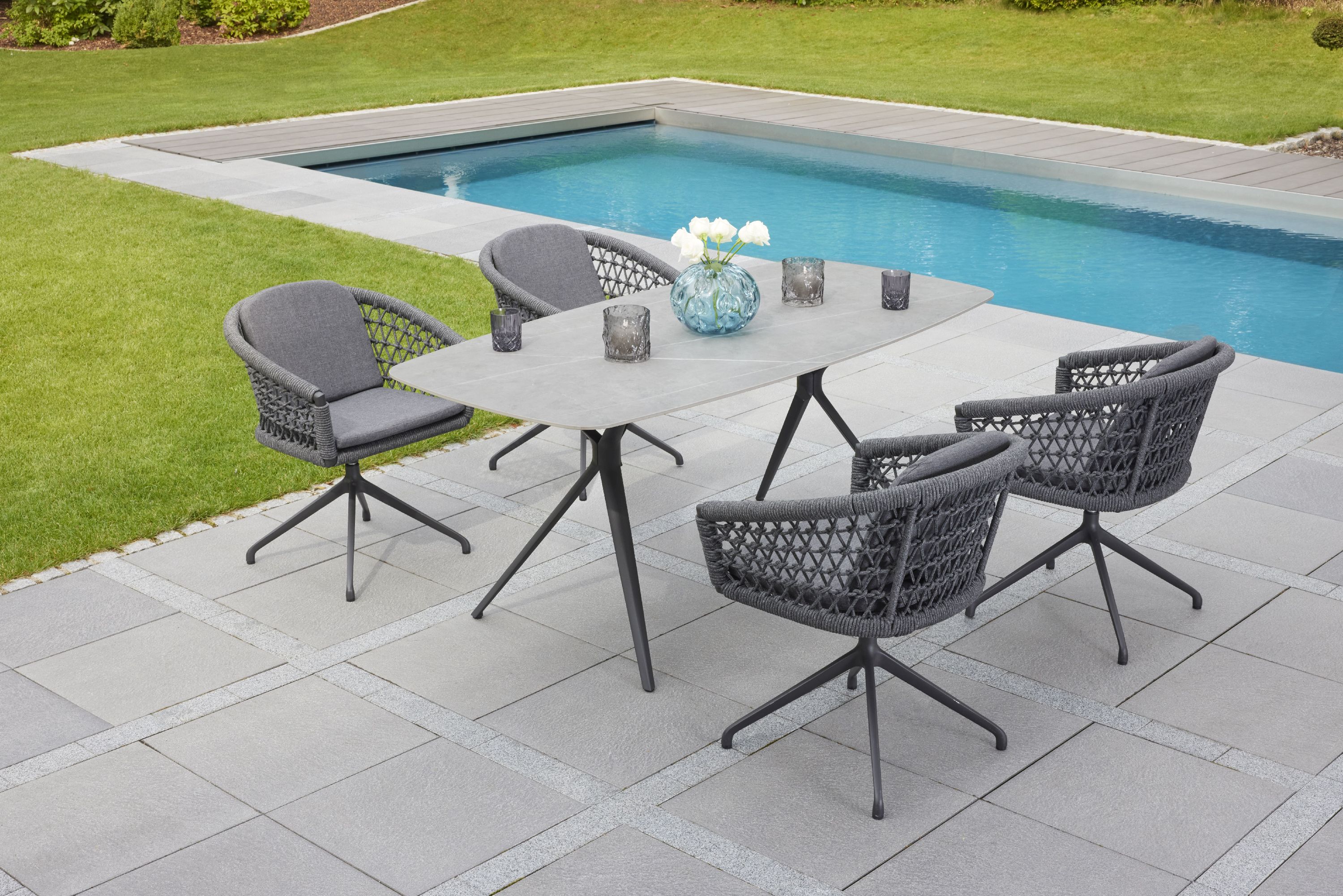 · Auflage: Olefin dunkelgrau · Seil: 7mm rund dunkelgrau · Gestell: Aluminium anthrazit ·... mehr