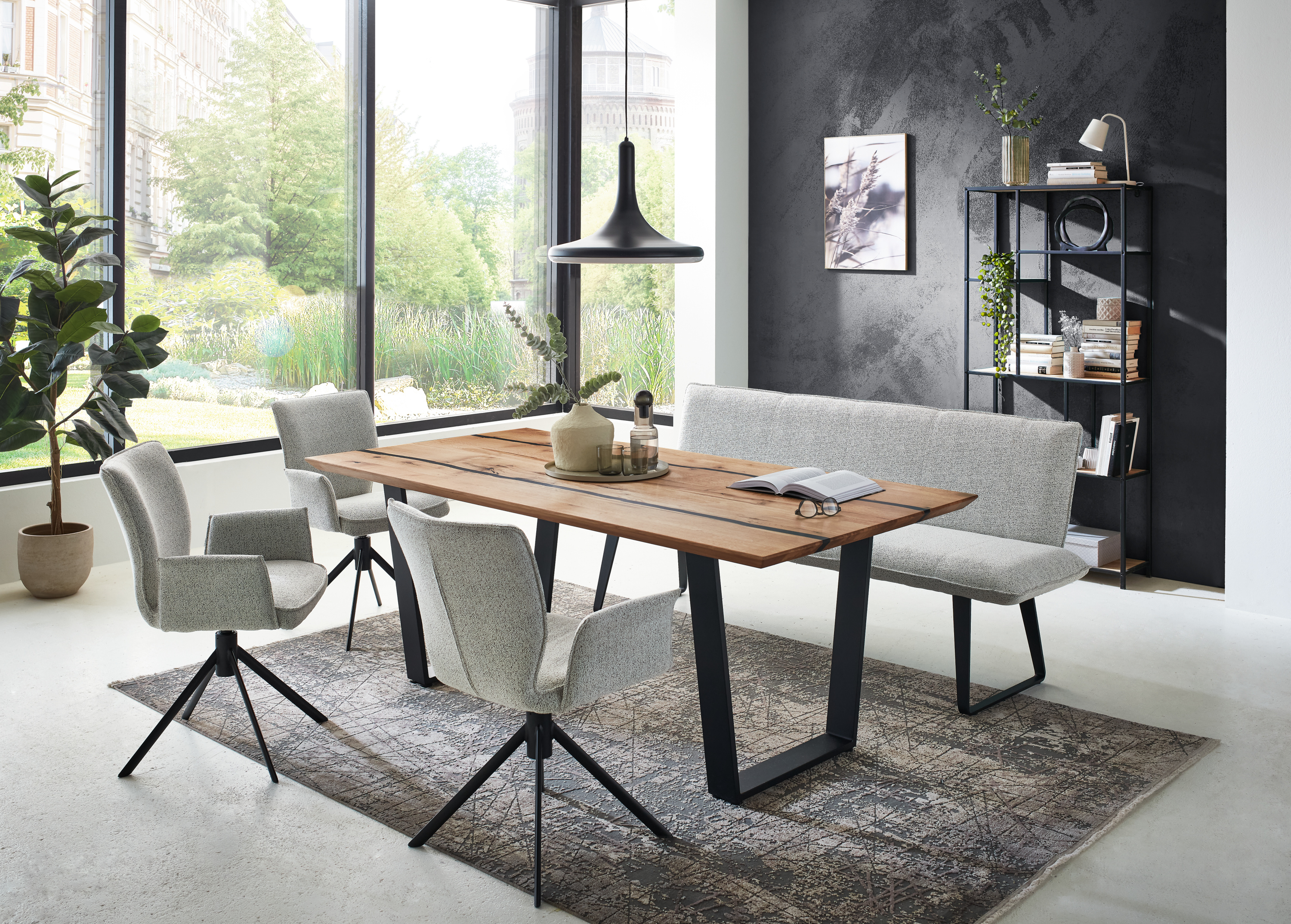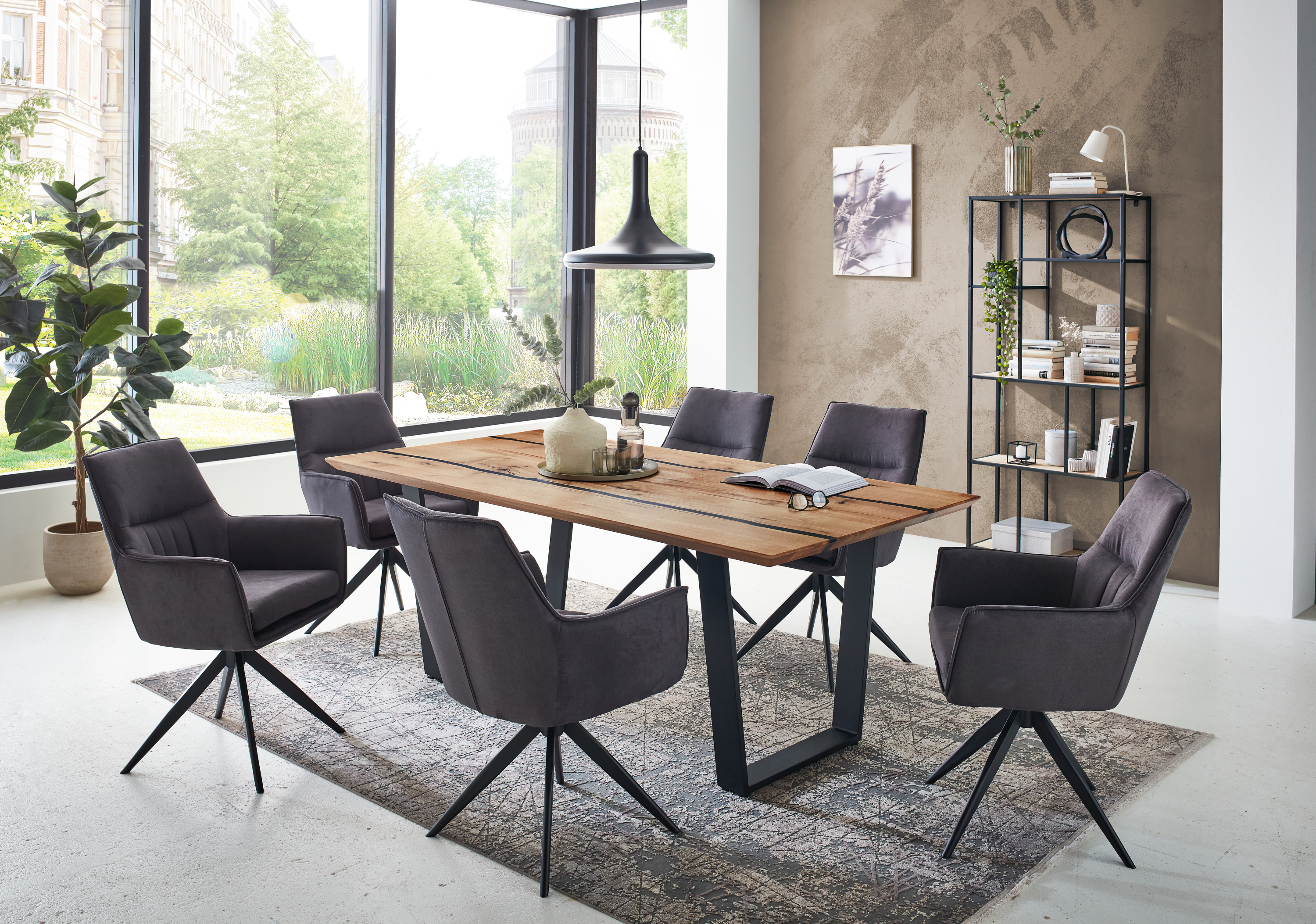 · Tischplatte: Charakter-Eiche massiv, Epoxidharzfüllung