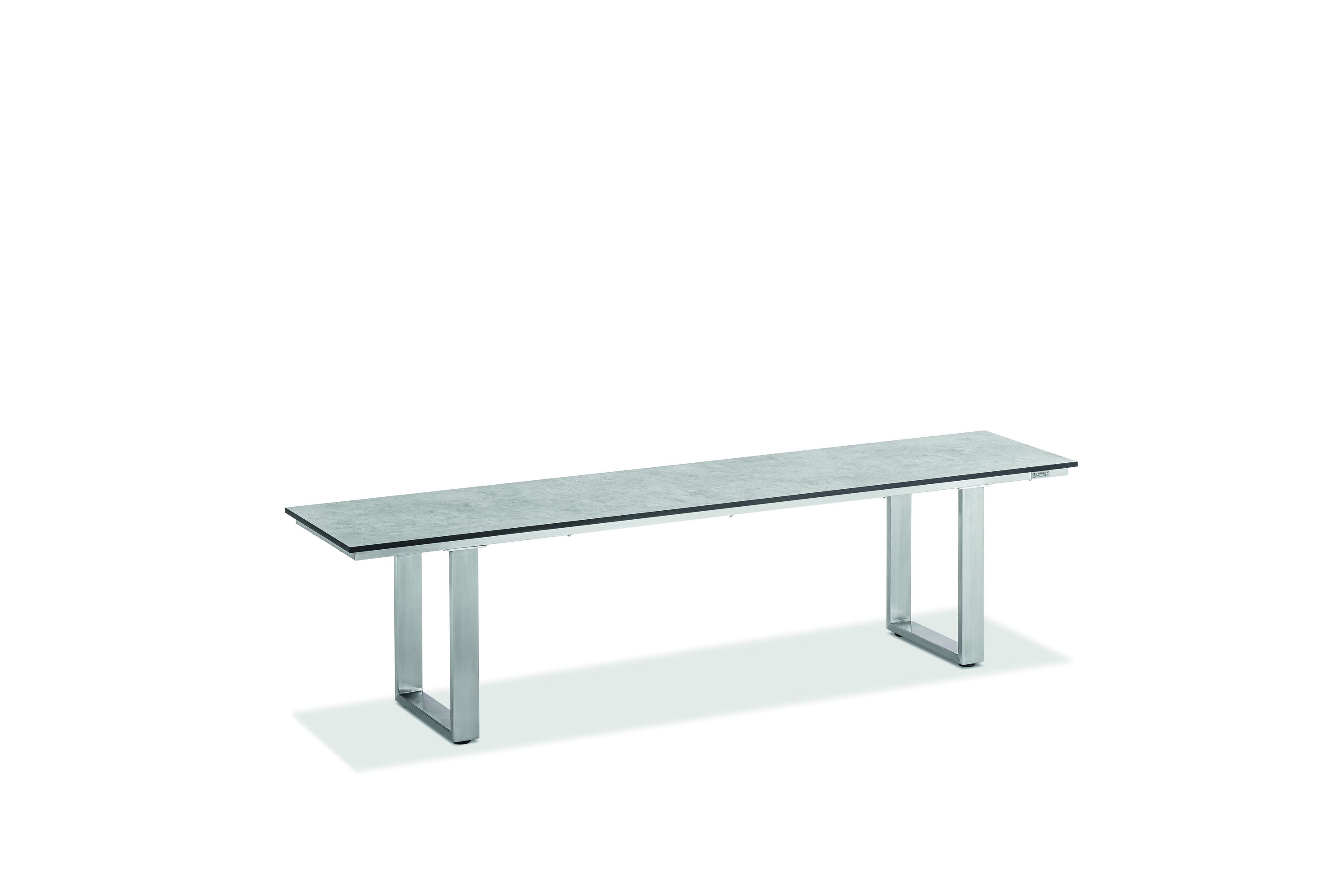 · Bank NEMO Sitzfläche HPL Zement, Gestell Profilkufe Edelstahl gebürstet.