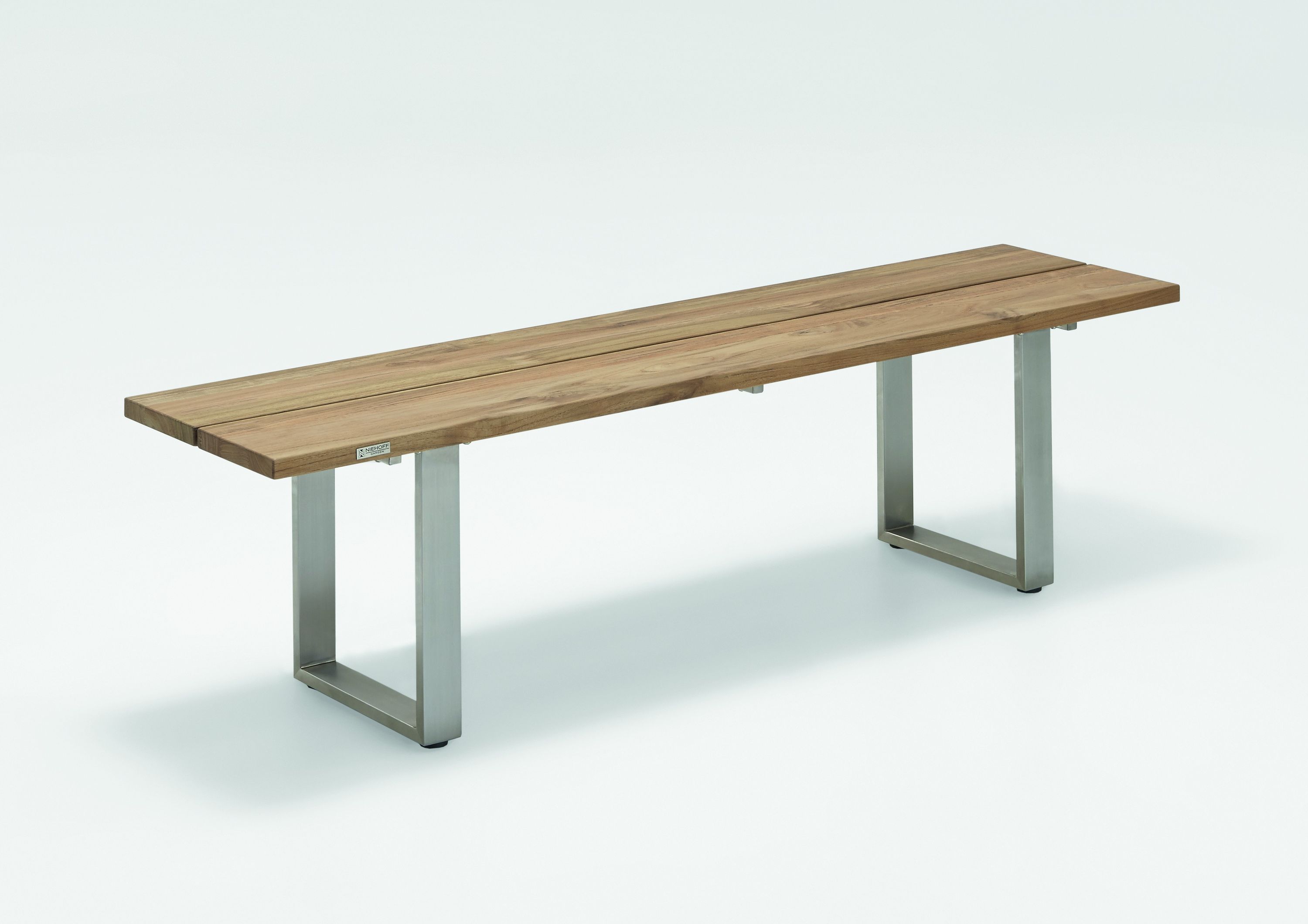 · Bank NEMO Sitzfläche Teak recycelt, Gestell Profilkufe Edelstahl gebürstet.