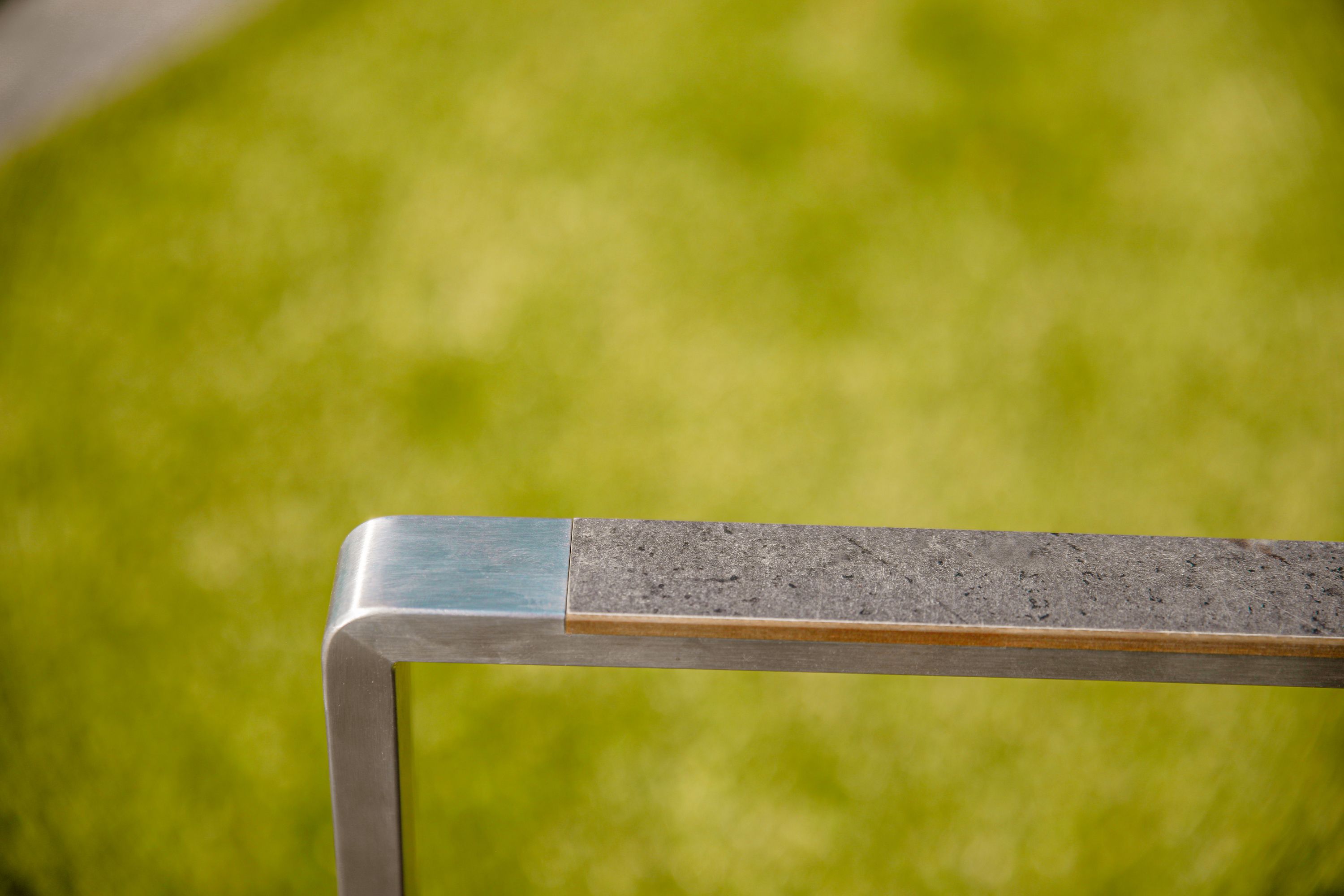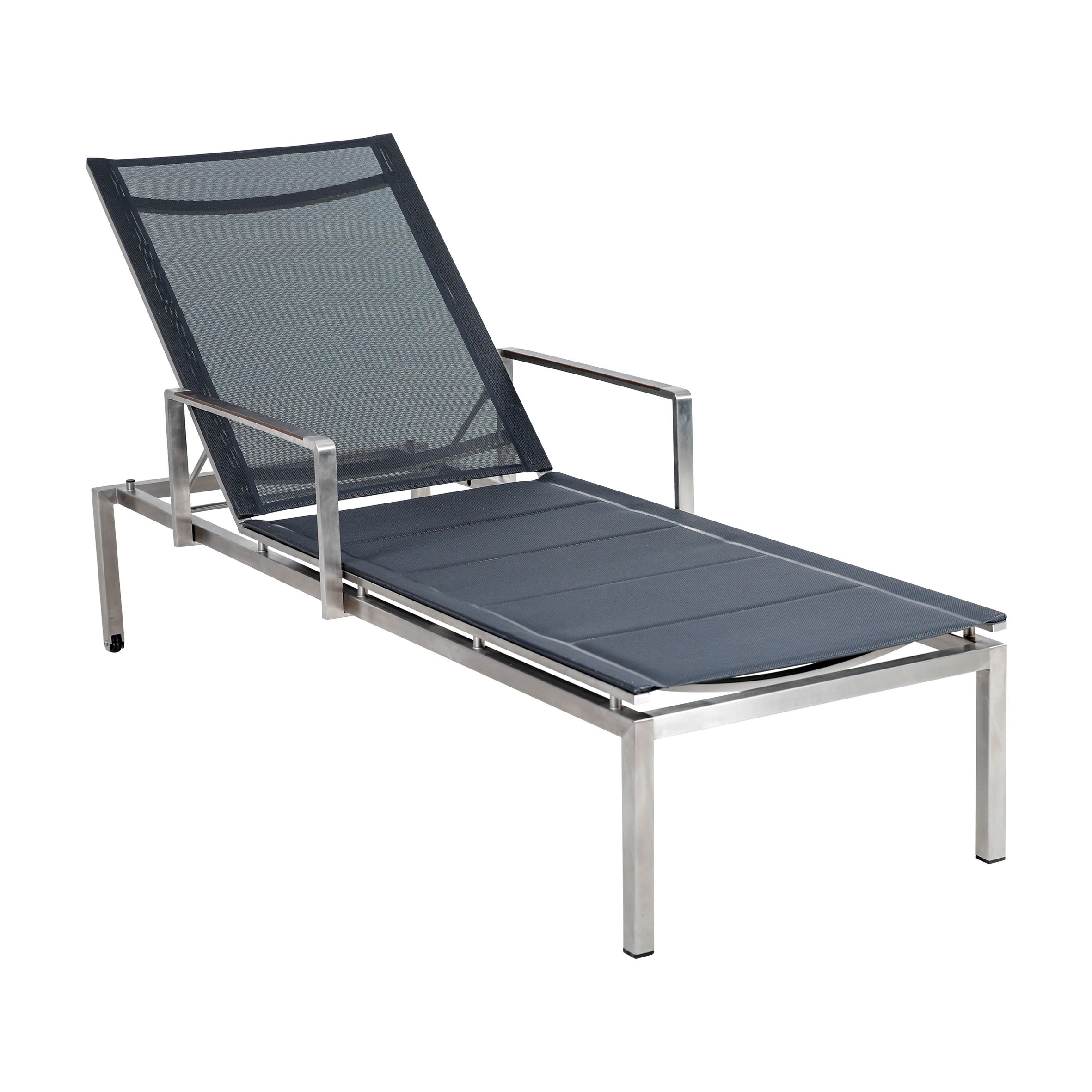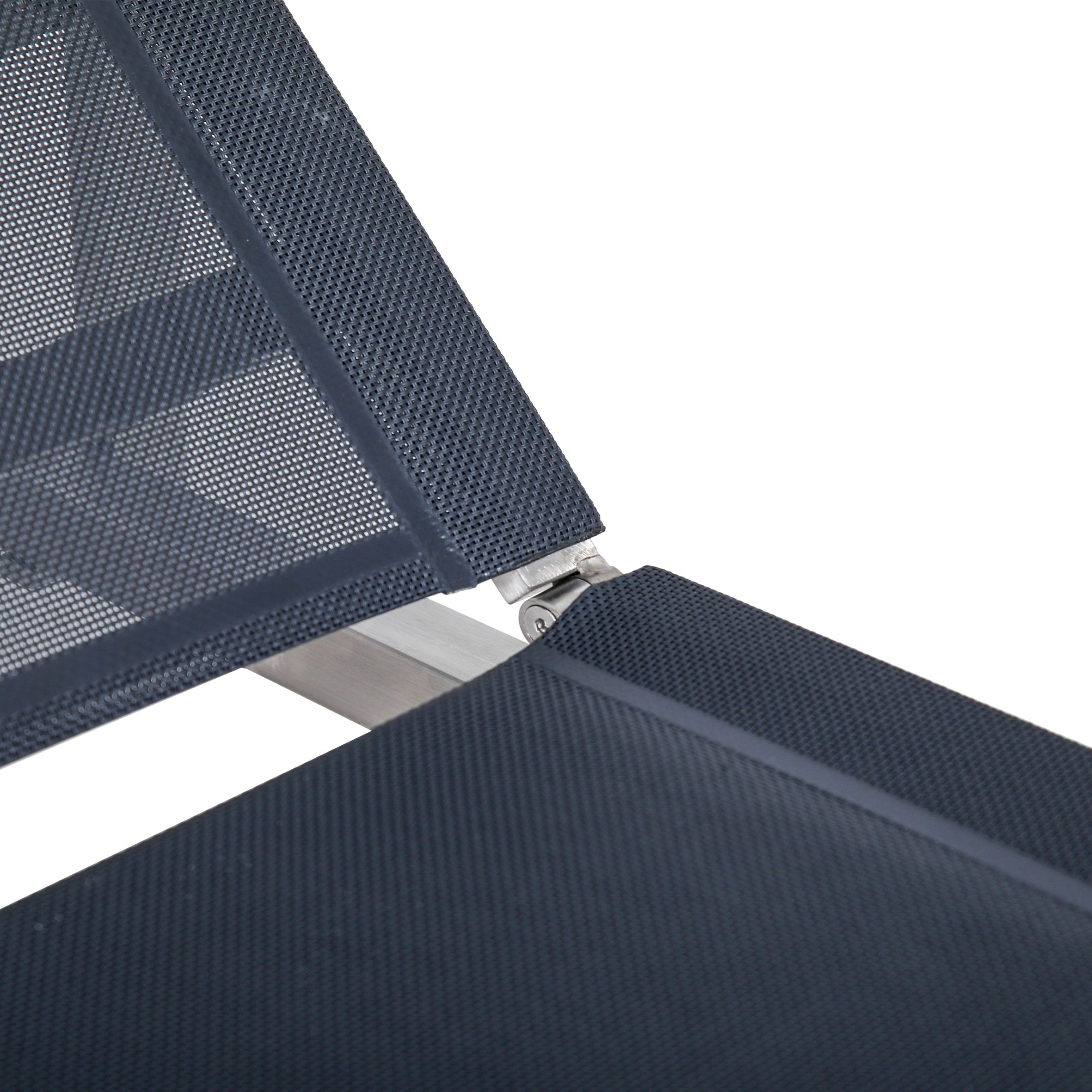 · Gestell Edelstahl silber · Bezug Textilene anthrazit · Ablagen Holzoptik · Rückenlehne... mehr