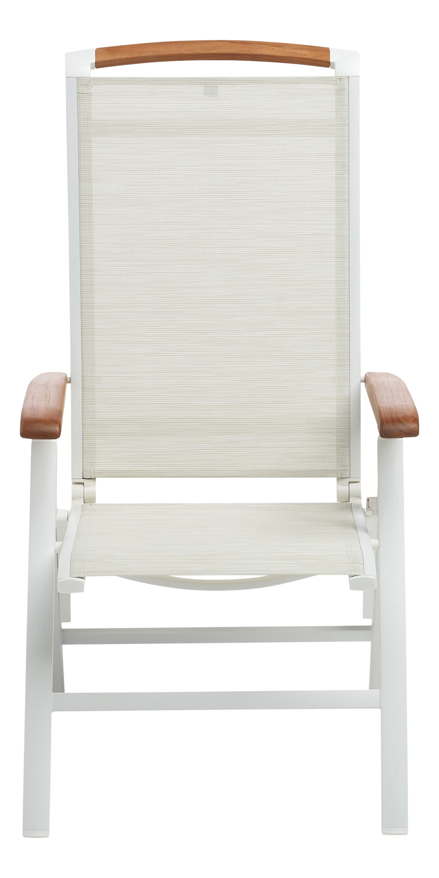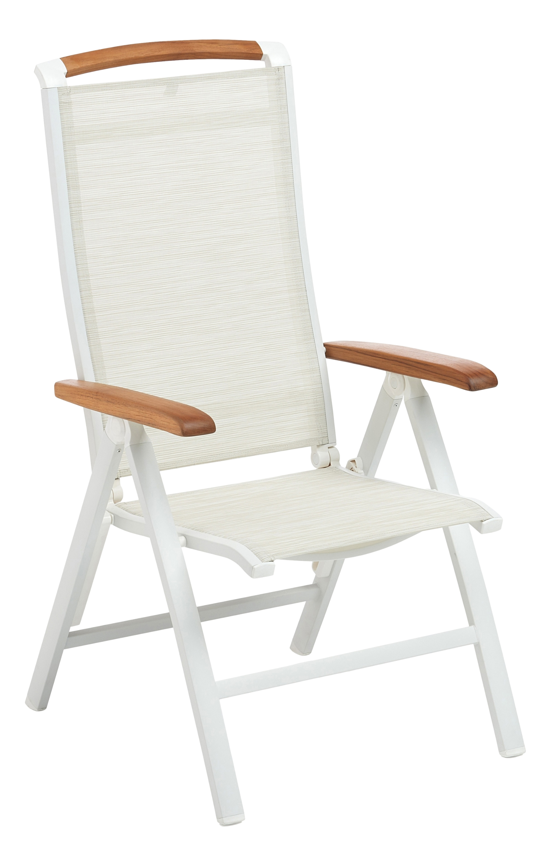 · weiß matt/beige/natur · Aluminium/Outdoorgewebe/Teak · 70% Polyvinylchlorid, 30% Polyester... mehr