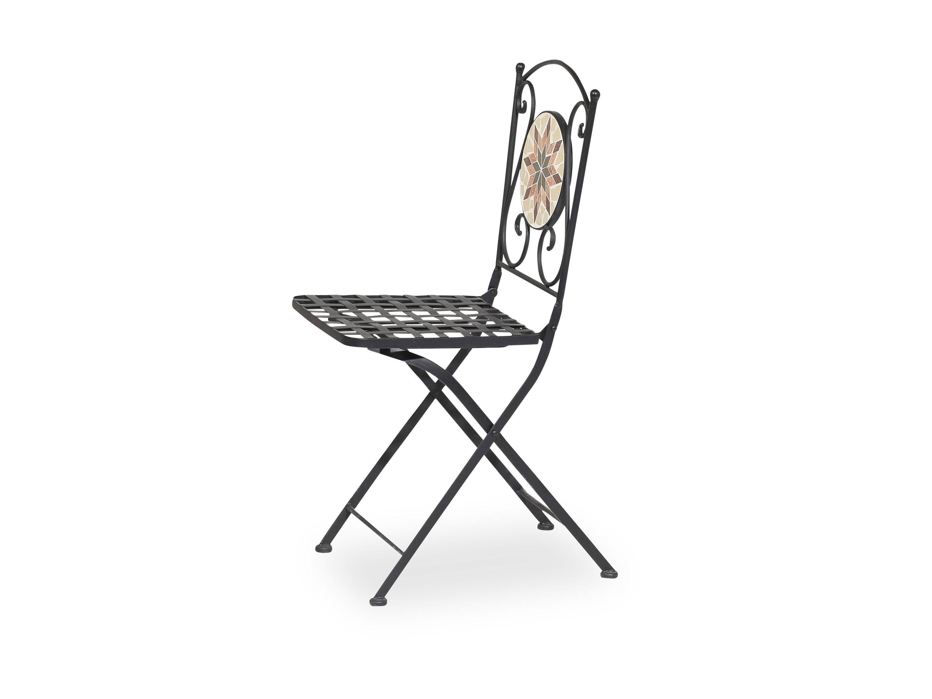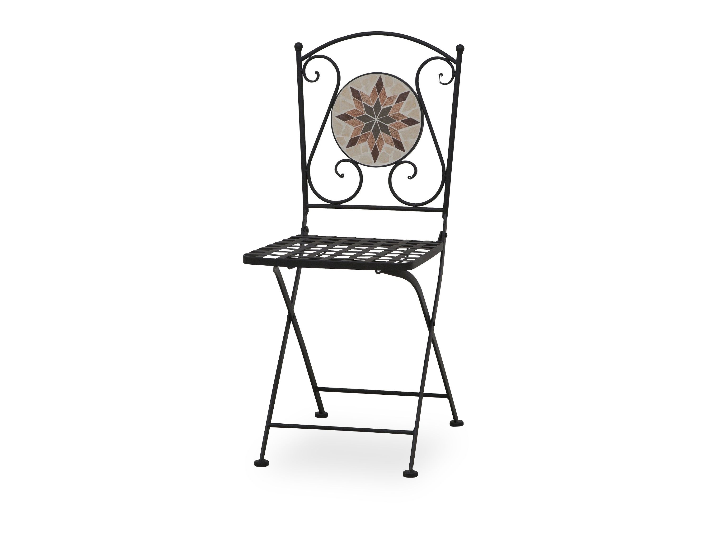· Der Stella Klappstuhl mit seiner traumhaften Mosaik Optik und dem geschwungenen Eisen bringt den Charme eines Schlossgartens zu Ihnen in den Garten.
