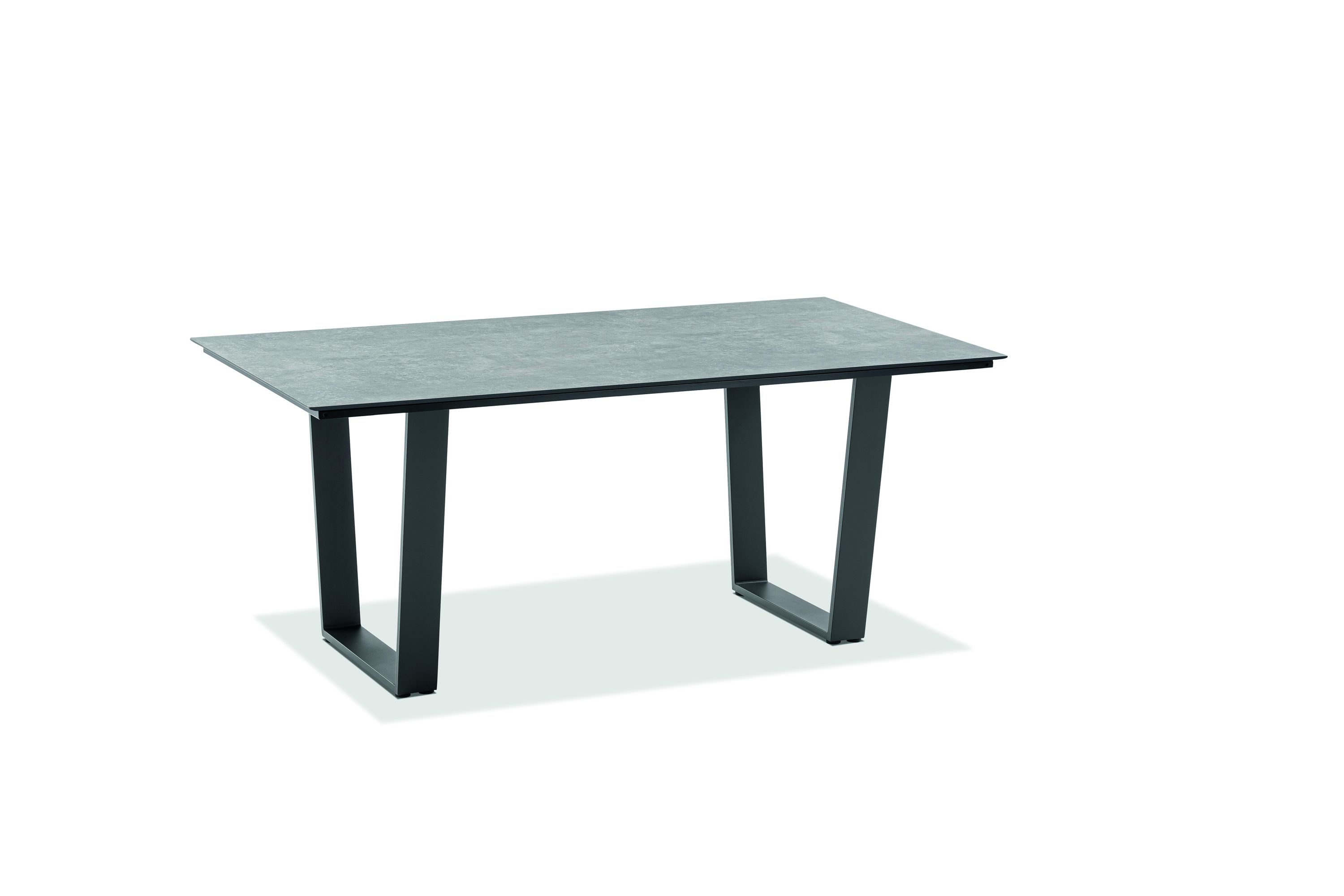 · Tisch NOAH Tischplatte HPL Zement, Gestell Trapezkufe Aluminium pulverbeschichtet, Farbton anthrazit.