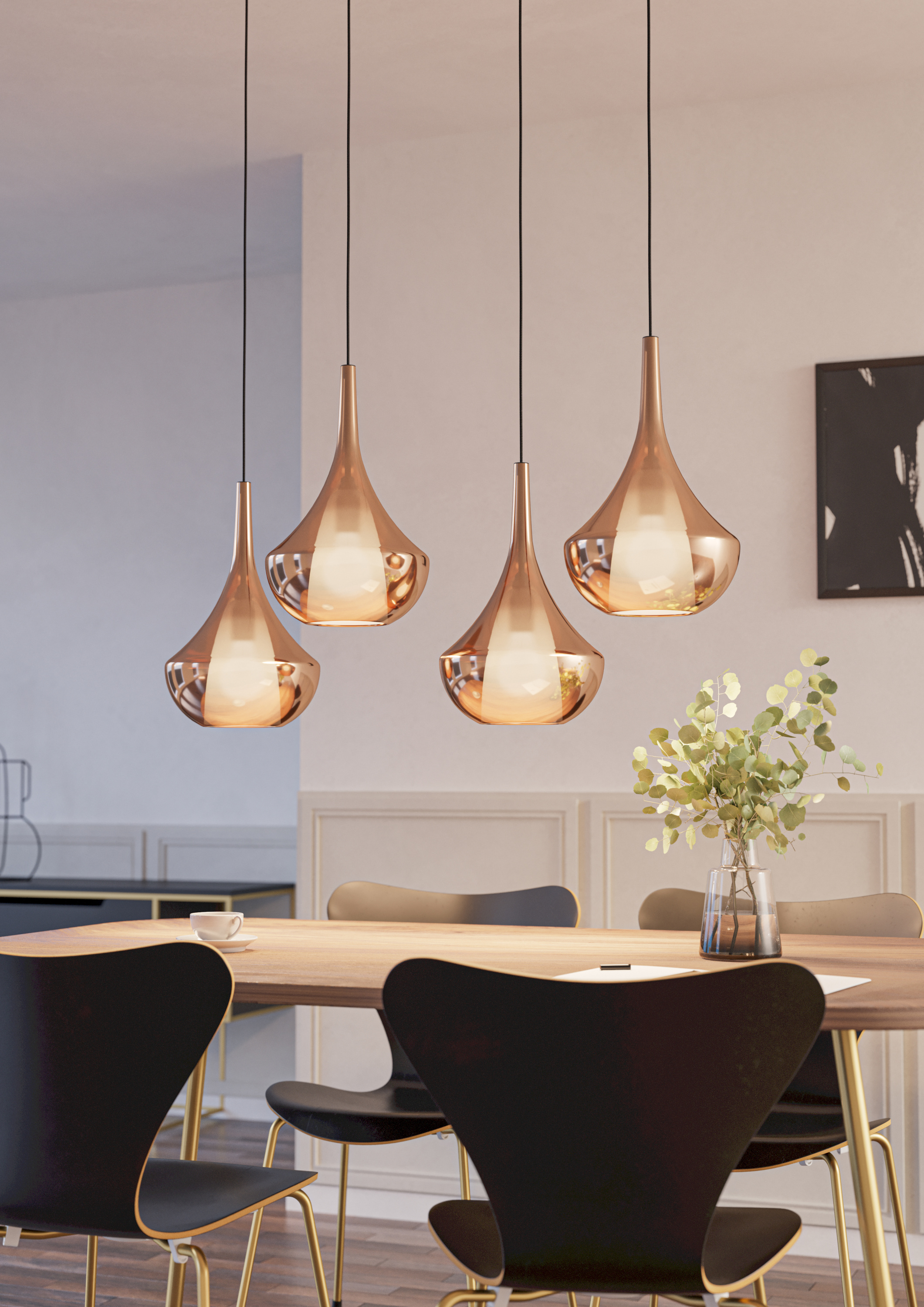 Holen Sie sich mit dieser formschönen Hängeleuchte eine einladende Stimmung und optimale Beleuchtung in Ihre vier Wände. Geschmackvolle Gestaltung und ein überzeugendes Wohnerlebnis machen die Hängelampe der Marke EGLO aus. Durch ihr klares Design vervollständigt die Leuchte das Lichtkonzept jeglicher Zimmer auf wirkungsvolle Weise. Sie besitzt eine Tiefe von 32 Zentimetern, verfügt über eine Höhe von 150 Zentimetern und ist 95,5 Zentimeter breit. Die Hängeleuchte ist für die Aufnahme von Leuchtmitteln mit E27-Sockel geeignet. Die Leuchte aus Metall kreiert eine wohnliche Atmosphäre und setzt Ihre Einrichtung gut in Szene. Durch die hervorragende Optik harmoniert sie mit jedem Ambiente und schafft eine Wohlfühlatmosphäre. Durch diese Hängeleuchte können Sie eine wohnliche Atmosphäre schaffen.