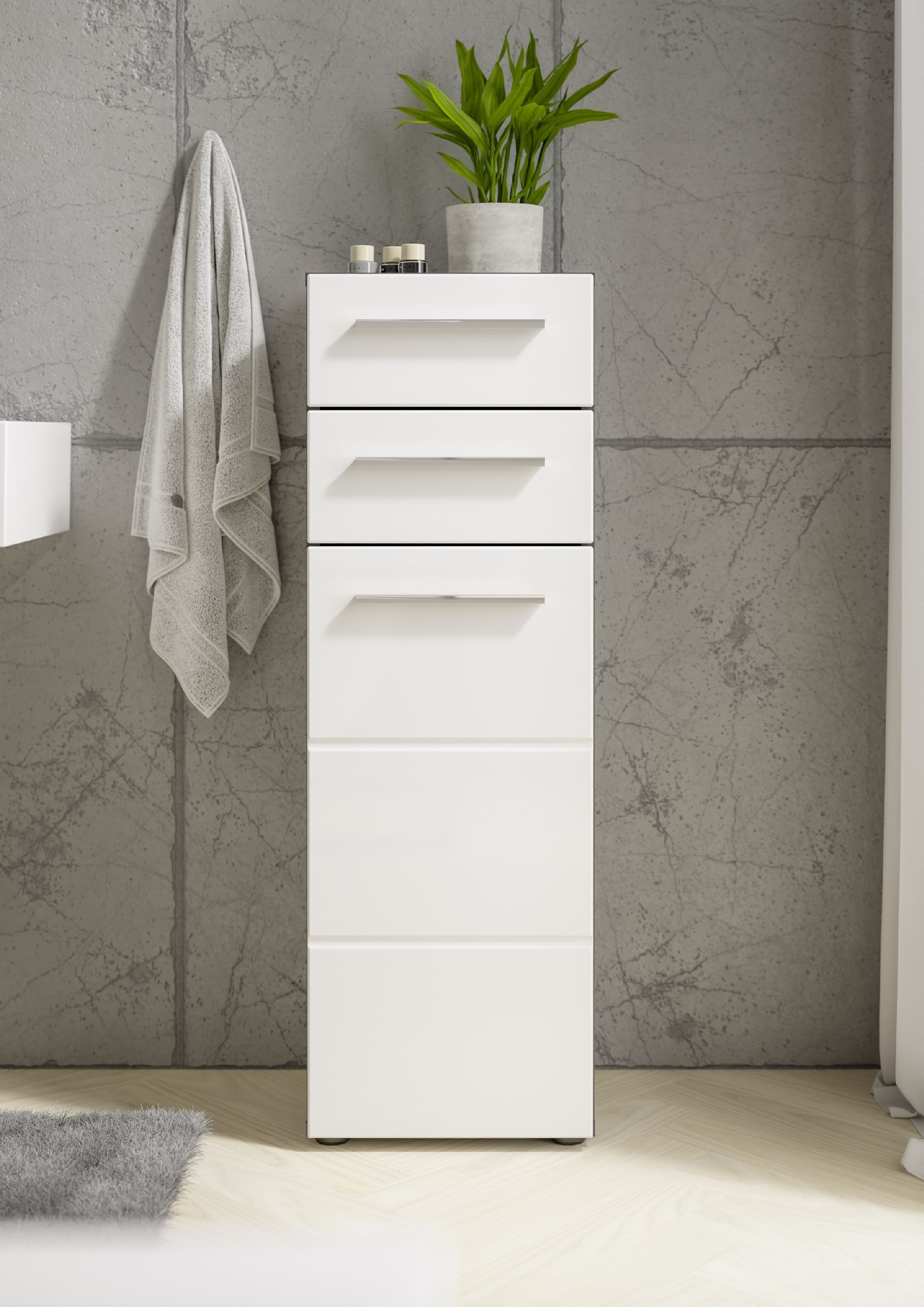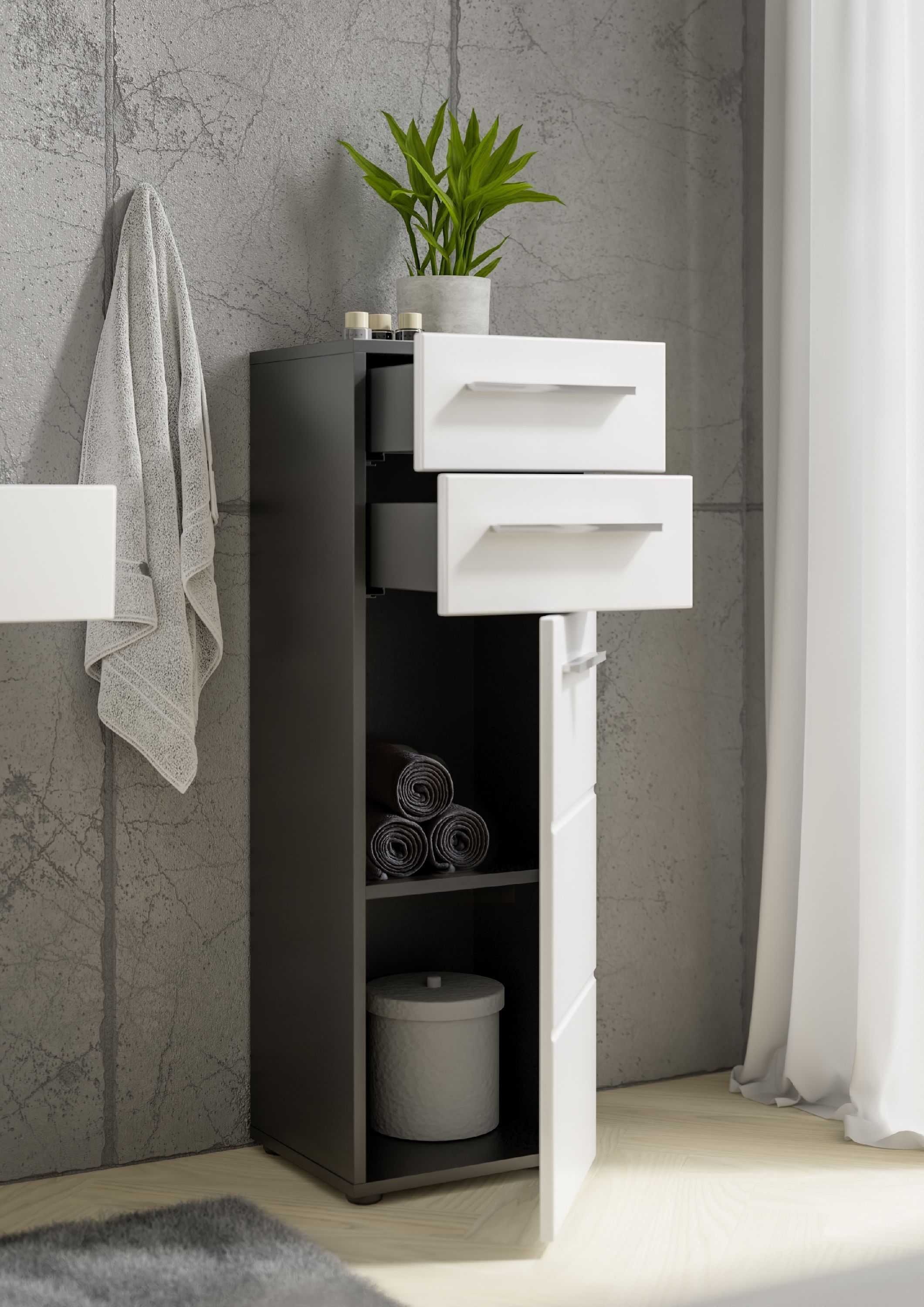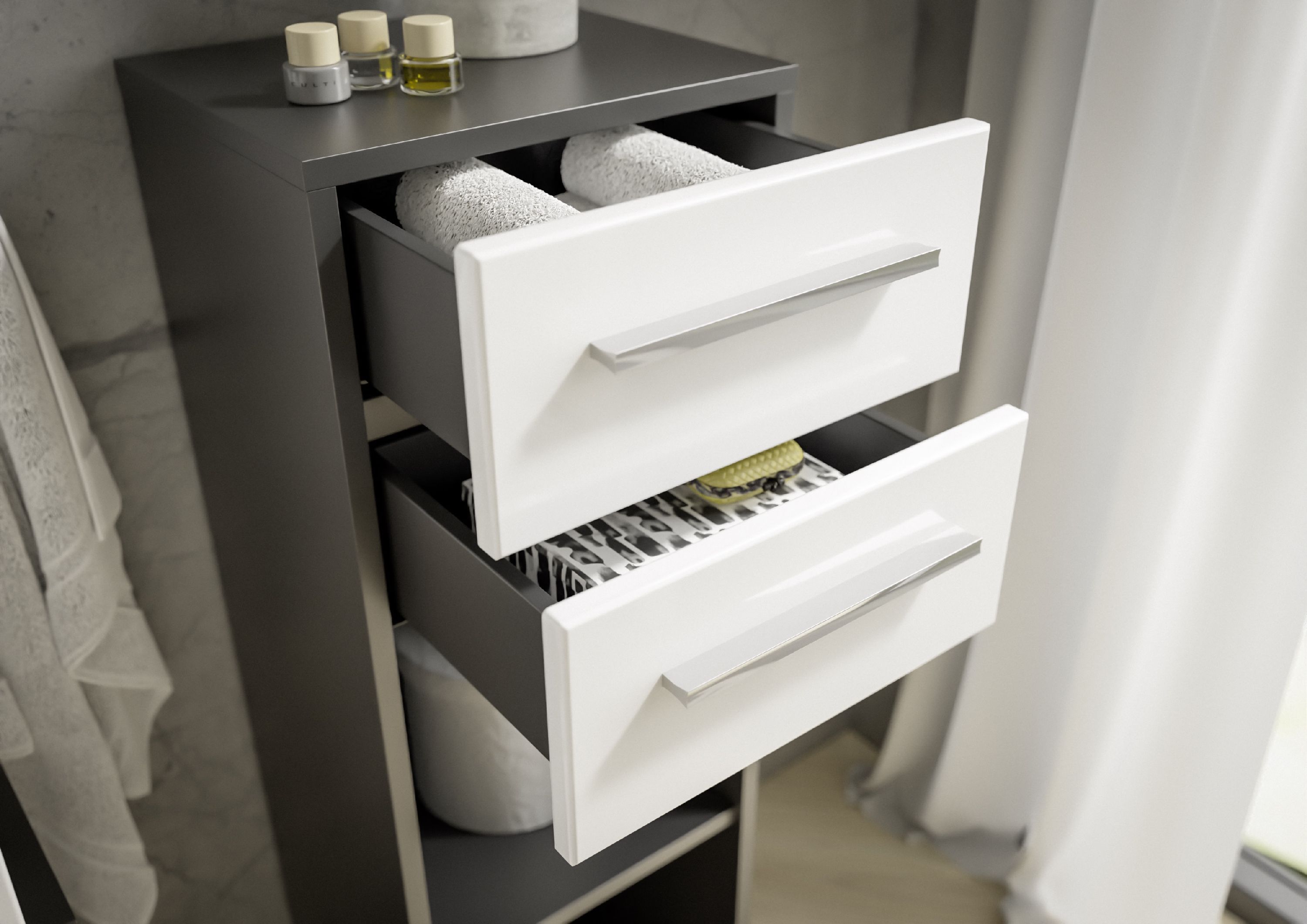· Korpus: Anthrazit Dekor · Front: Weiß Hochglanz Dekor · zwei Schubkästen · eine Tür, 1... mehr