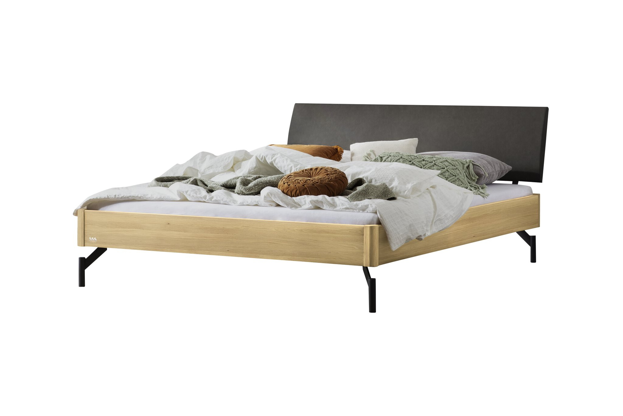 · Ein bodenständiger Norditaliener ist unser Bett «Broni». Die metallenen, stilvoll gerundeten Füsse passen perfekt zu den abgesetzten, ebenfalls gerundeten Eckverbindungen des Bettrahmens. Das zurückhaltend gestaltete Kopfteil bietet den optischen Ausgleich dazu und verleiht diesem Bett eine Eleganz, die in jedes Schlafzimmer passt.