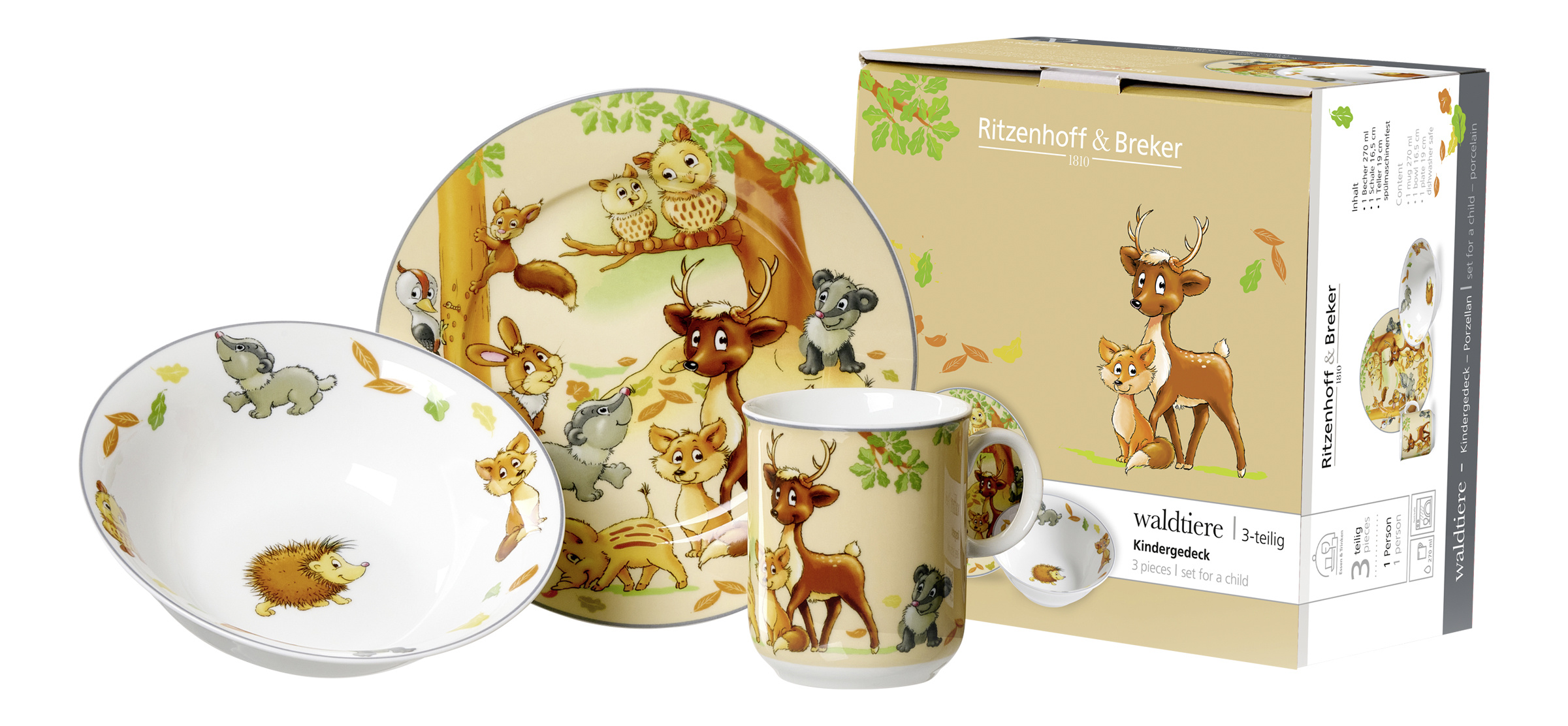 · bestehend aus: Henkelbecher 270 ml Schale 16,5 cm Teller 19 cm