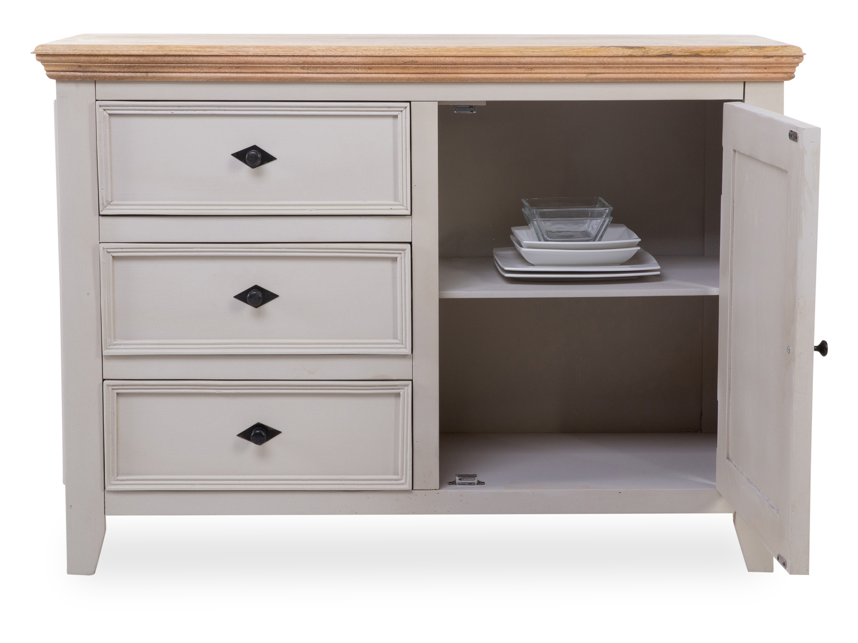 · mit einer Tür und drei Schubladen