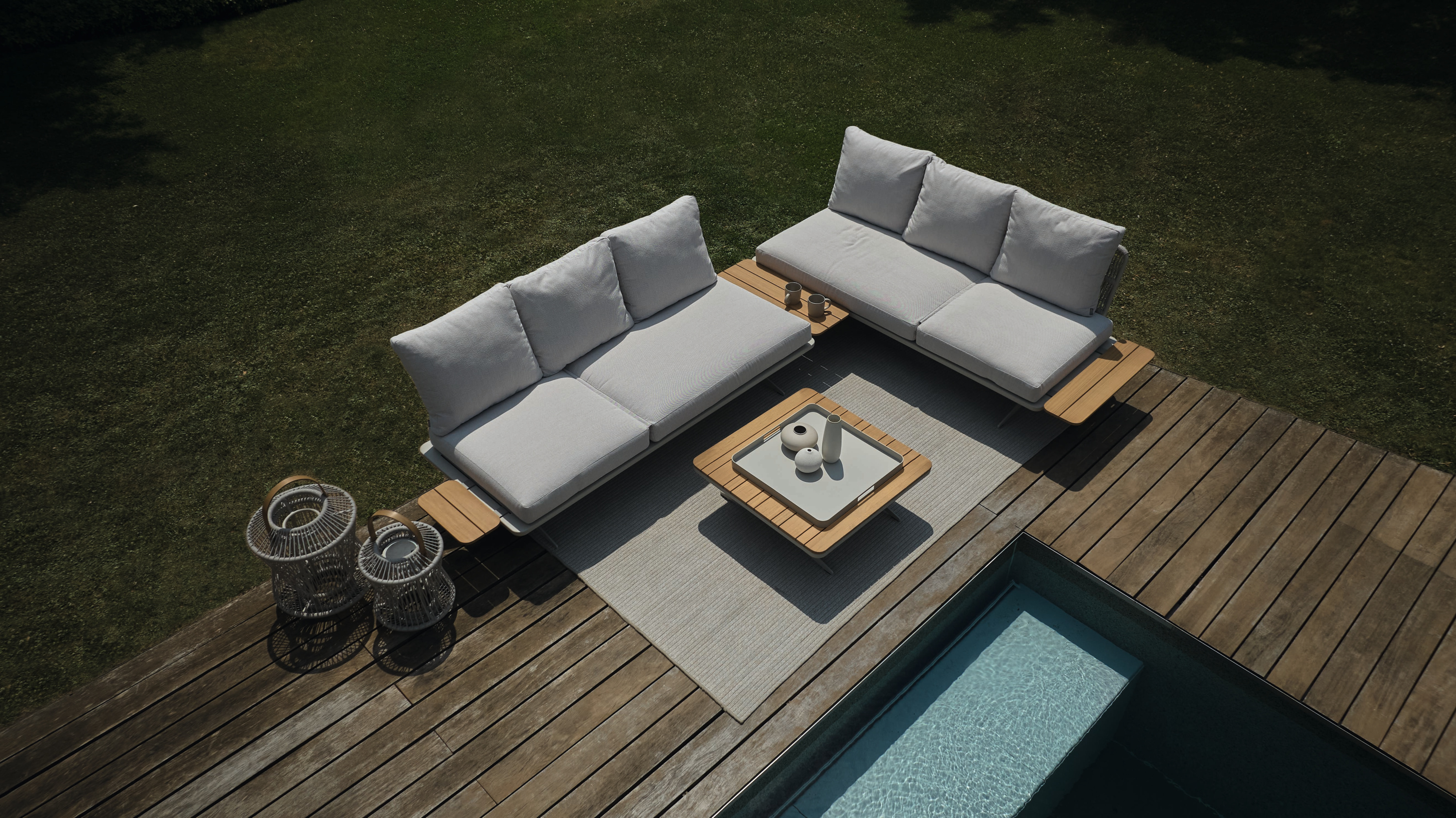 · Gestell: Aluminium greige · Bezug: Kordel vanilla · Kissenset: Farbe vanilla · Maximale... mehr