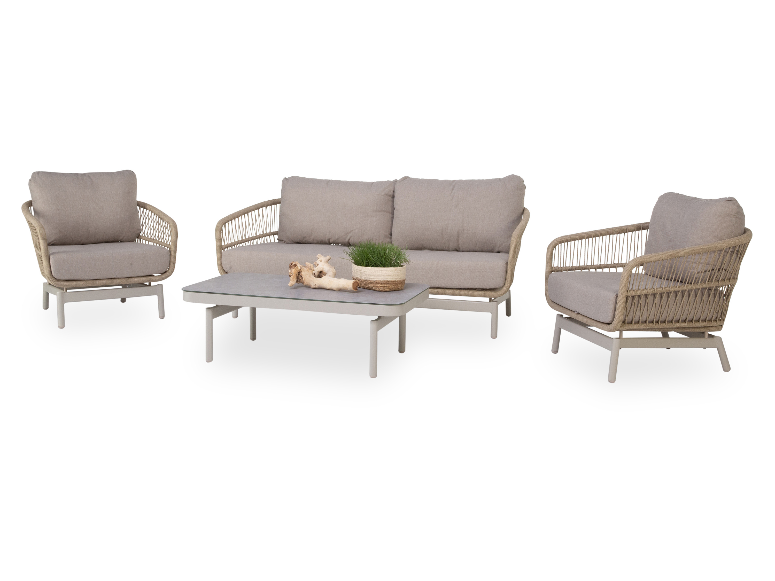 · Gestell: Aluminium, camel, pulverbeschichtet, Weben mit V-Stil, Seil