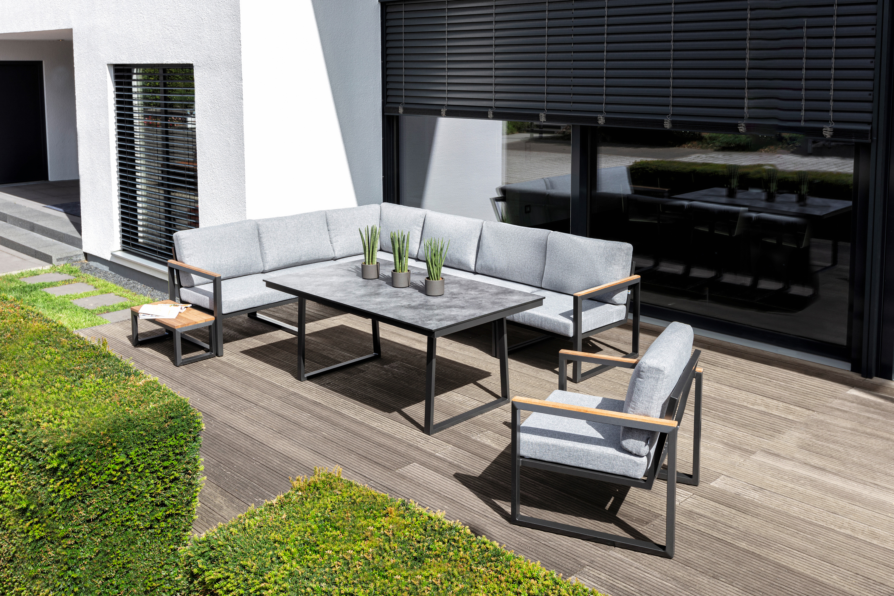 · Tagsüber relaxen und später gemeinsam mit Freunden mit Snacks und Drinks den Abend ausklingen lassen ? mit der Serie Ocean Skid wird die Terrasse zum zweiten Wohnzimmer und somit zum neuen Lieblingsplatz.Eine Serie, die vor allem praktische Eigenschaften hat, wird zu einem edlen Hingucker. OCEAN SKID besticht durch ihre variable Gestaltung, bei der jeder seine passende Variante erhält: Ob mit Armlehnen aus Aluminium, Onlay Armlehnen aus FSC-zertifiziertem Teak, oder die schmalere City-Line-Variante, nur erhältlich mit Onlay-Armlehne aus FSC-zertifiziertem Teak.