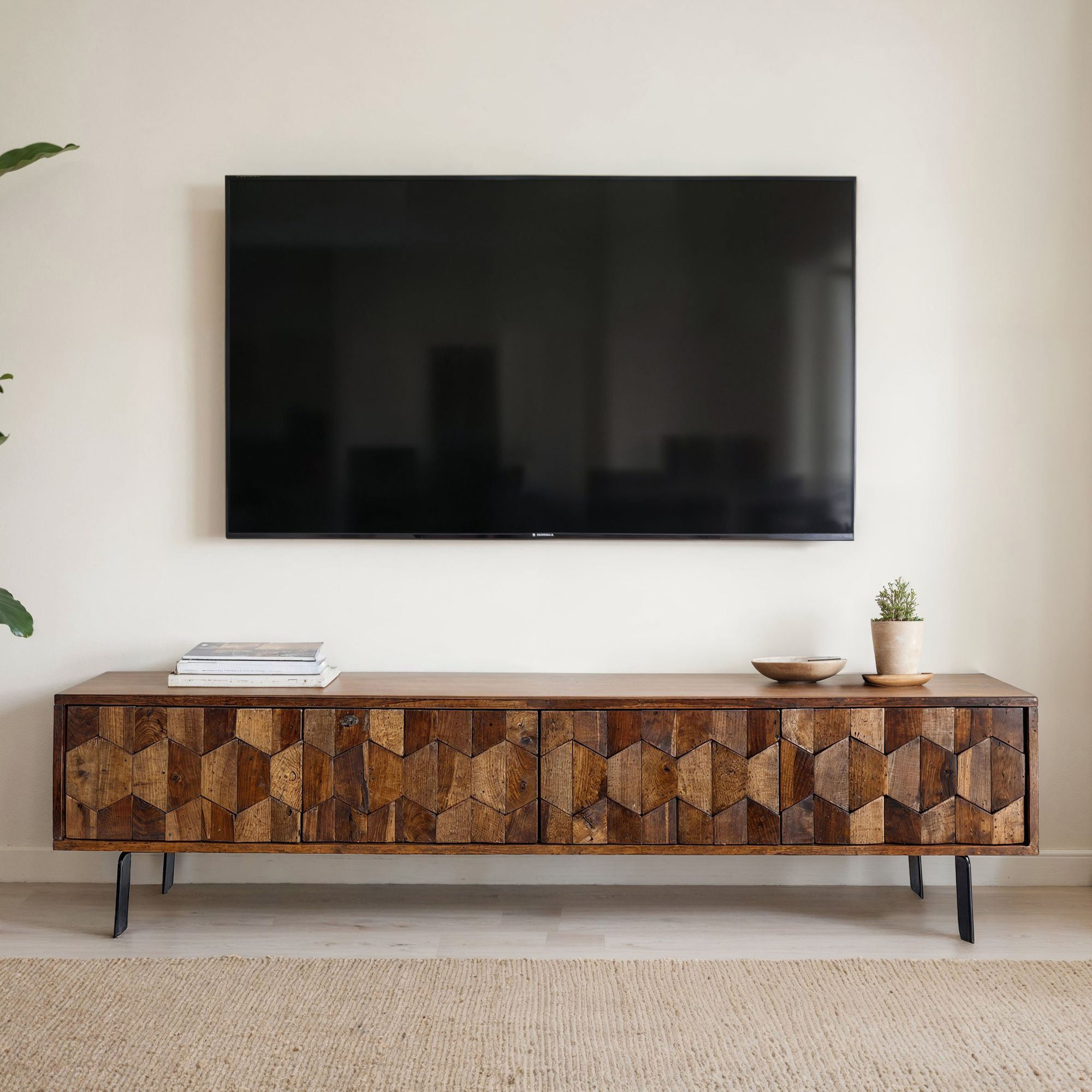 · Design-HIGHLIGHT IM WOHNZIMMER - Geometrische 3D-Fronten setzen moderne Akzente, während schwarze Metallbeine für einen stilvollen Kontrast und sicheren Stand sorgen.