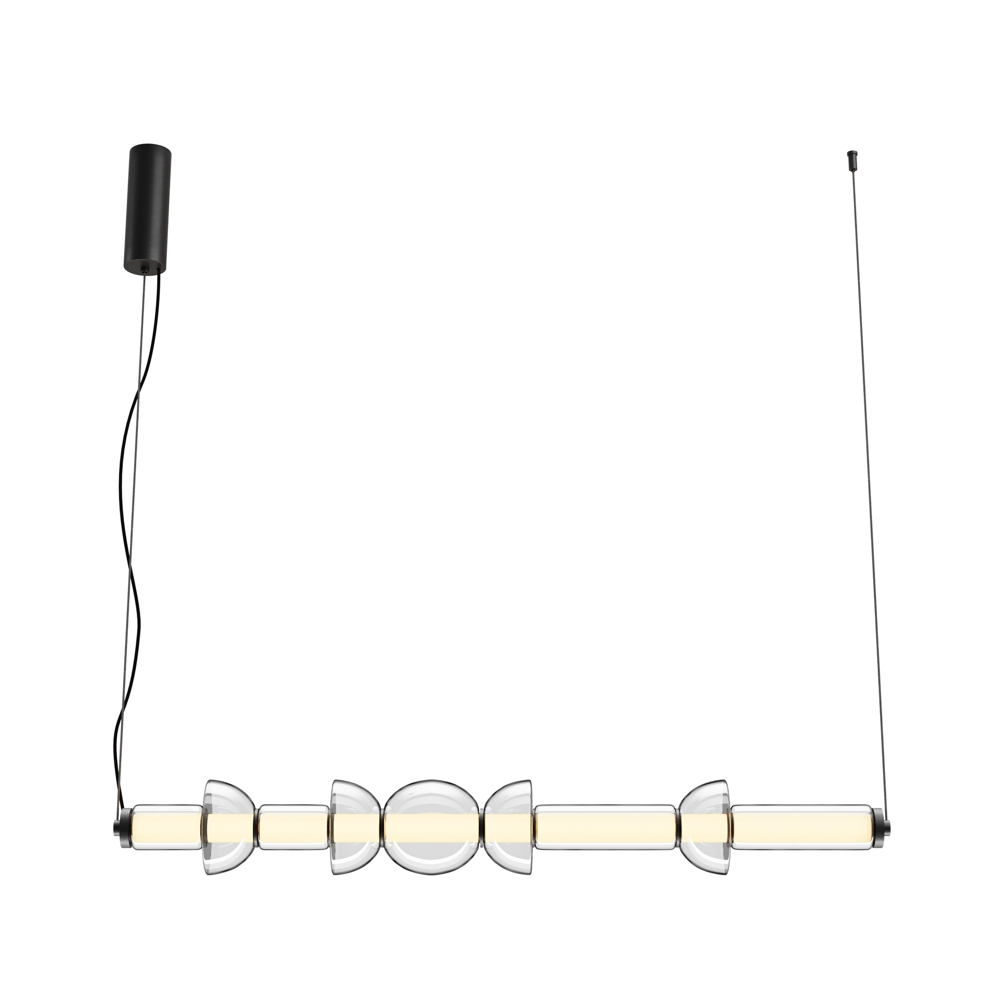 · Beschläge - Metall, Farbe - Schwarz, Messing. Lampenschirme - transparentes Glas. 2-in-1-Halterung - horizontal und vertikal. Die Konstruktion und das Design sind ideal zum Kompilieren. Die Silhouetten der Leuchte erinnern an das Bild von fantastischen Raumschiffen. Lichtstrom - 4800 Lm, für die Grundbeleuchtung. LED-Lichtquelle. Farbtemperatur - 3000?.