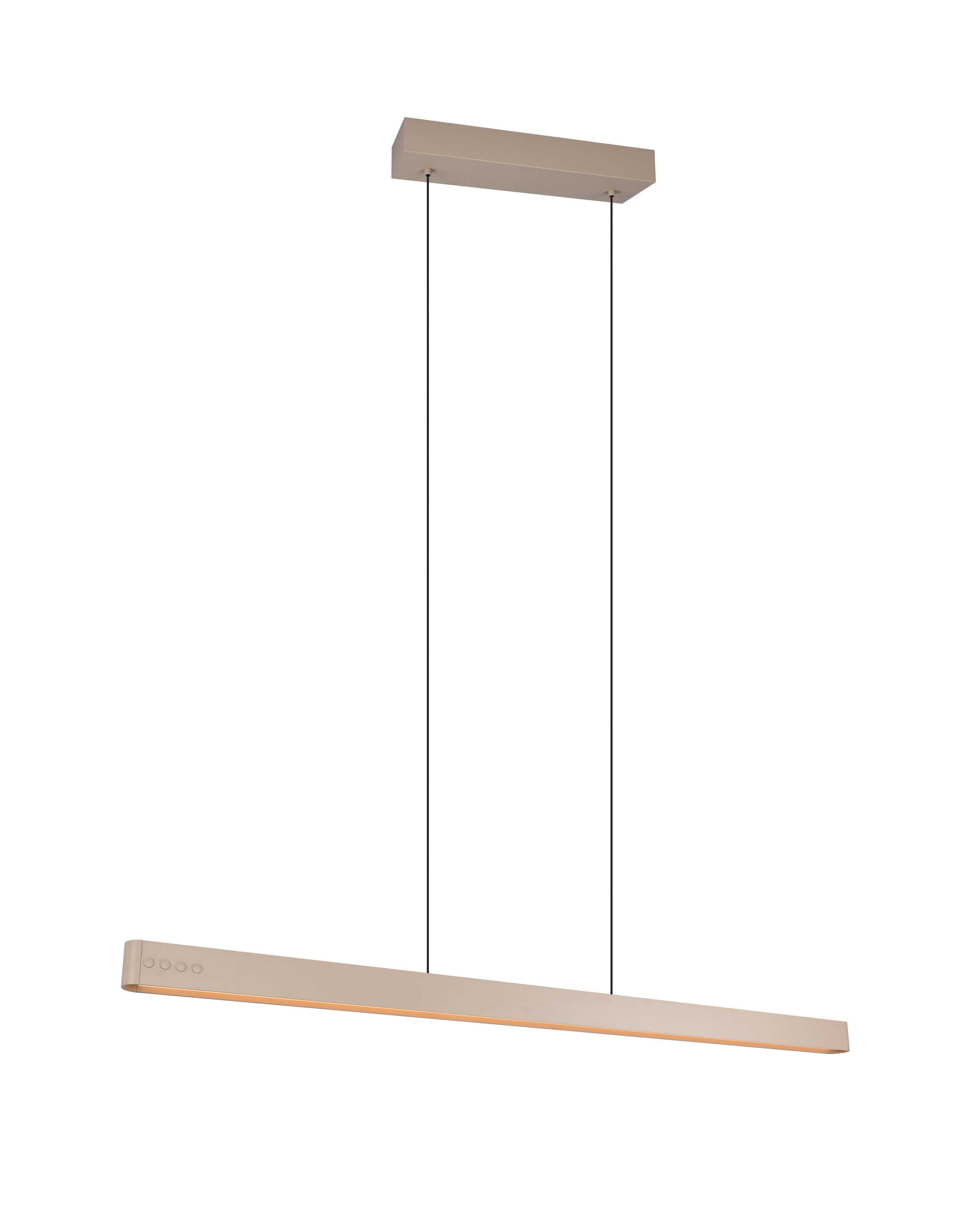 · Die Pendelleuchte DONEGAL vereint moderne Zurückhaltung mit durchdachter Technik und sorgt für stimmungsvolles Licht genau dort, wo Sie es wollen. Ihr schlankes, elegantes Design fügt sich nahtlos in unterschiedlichste Interieurs ein und unterstreicht stilvoll moderne Wohnräume, offene Essbereiche oder minimalistisch eingerichtete Arbeitsbereiche. Ein besonderes Highlight: Die Leuchte ist motorbetrieben höhenverstellbar ? und das ganz bequem per Fernbedienung. Ob gemütlicher Abend am Esstisch oder konzentriertes Arbeiten ? mit einem Knopfdruck lässt sich Höhe, Lichtfarbe und Helligkeit stufenlos regulieren. Für die späten Stunden sorgt das integrierte Nachtlicht für ein sanftes, blendfreies Licht. Der Dimmer erlaubt eine präzise Anpassung an jede Stimmung, von hell und aktiv bis ruhig und entspannt. DONEGAL ist aus Metall in Warm beige gefertigt ? eine Kombination, die zurückhaltend und dennoch wertig erscheint. Die samtmatte Oberfläche unterstreicht den eleganten Gesamteindruck der Leuchte und harmoniert hervorragend mit modernen, reduzierten Farbkonzepten. Darüber hinaus verfügen die Leuchten über moderne LED-Technologie, die für eine hohe Lichtqualität steht. LED-Lichtquellen zeichnen sich durch eine lange Lebensdauer und eine geringe Wärmeentwicklung aus.