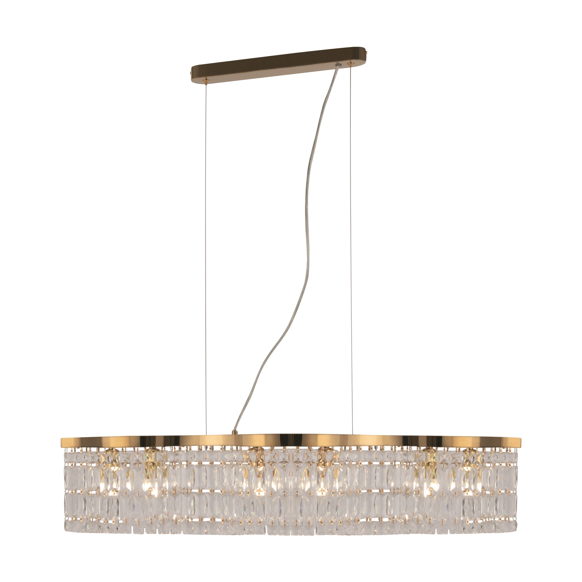 · Metallbeschläge in 2 Farbtönen: Chrom und Gold. Dekor: Transparente Kristalle. Deckenmodelle haben zwei Schichten von Anhängern. Durch ein Seil einstellbare Höhe der Pendel-Kronleuchte.
