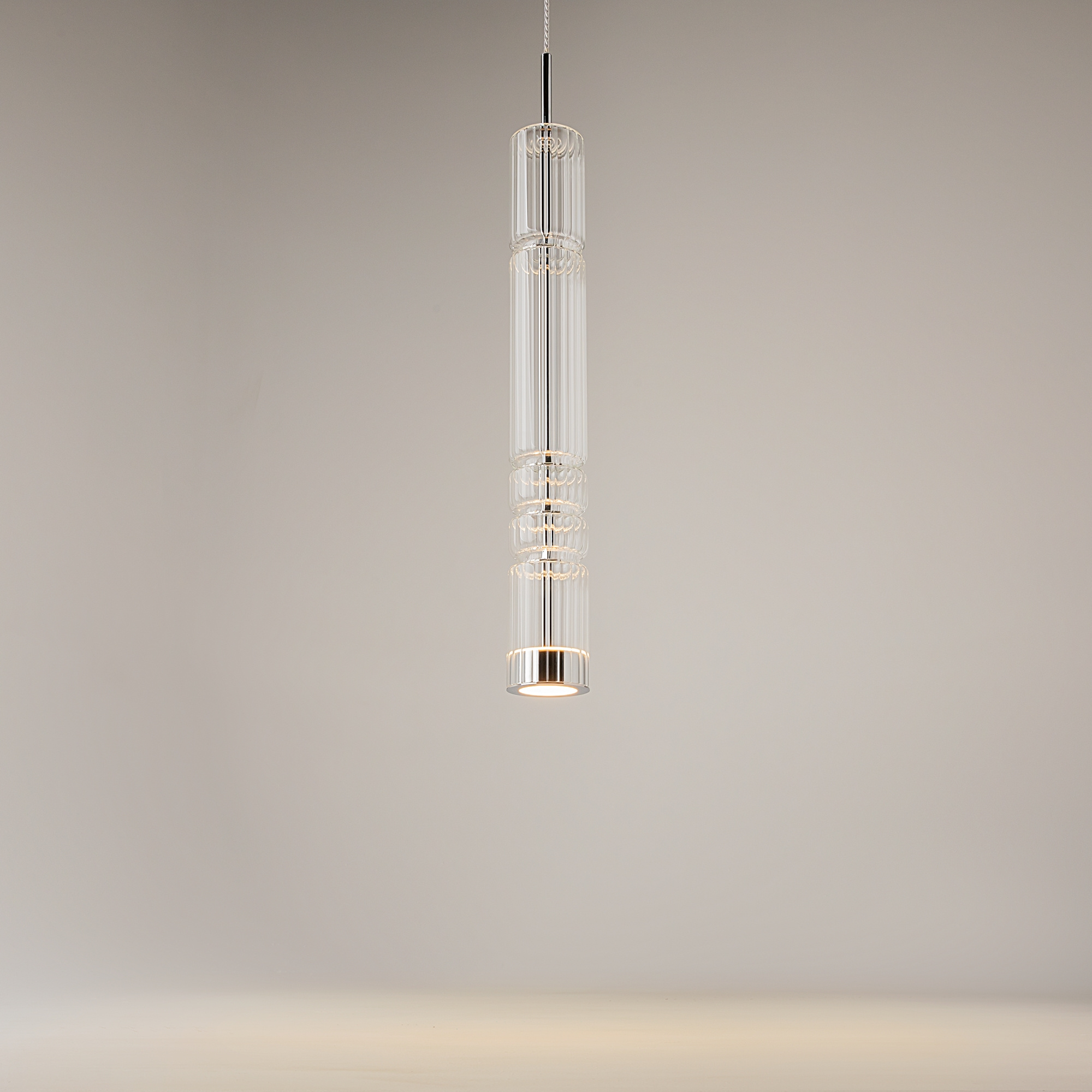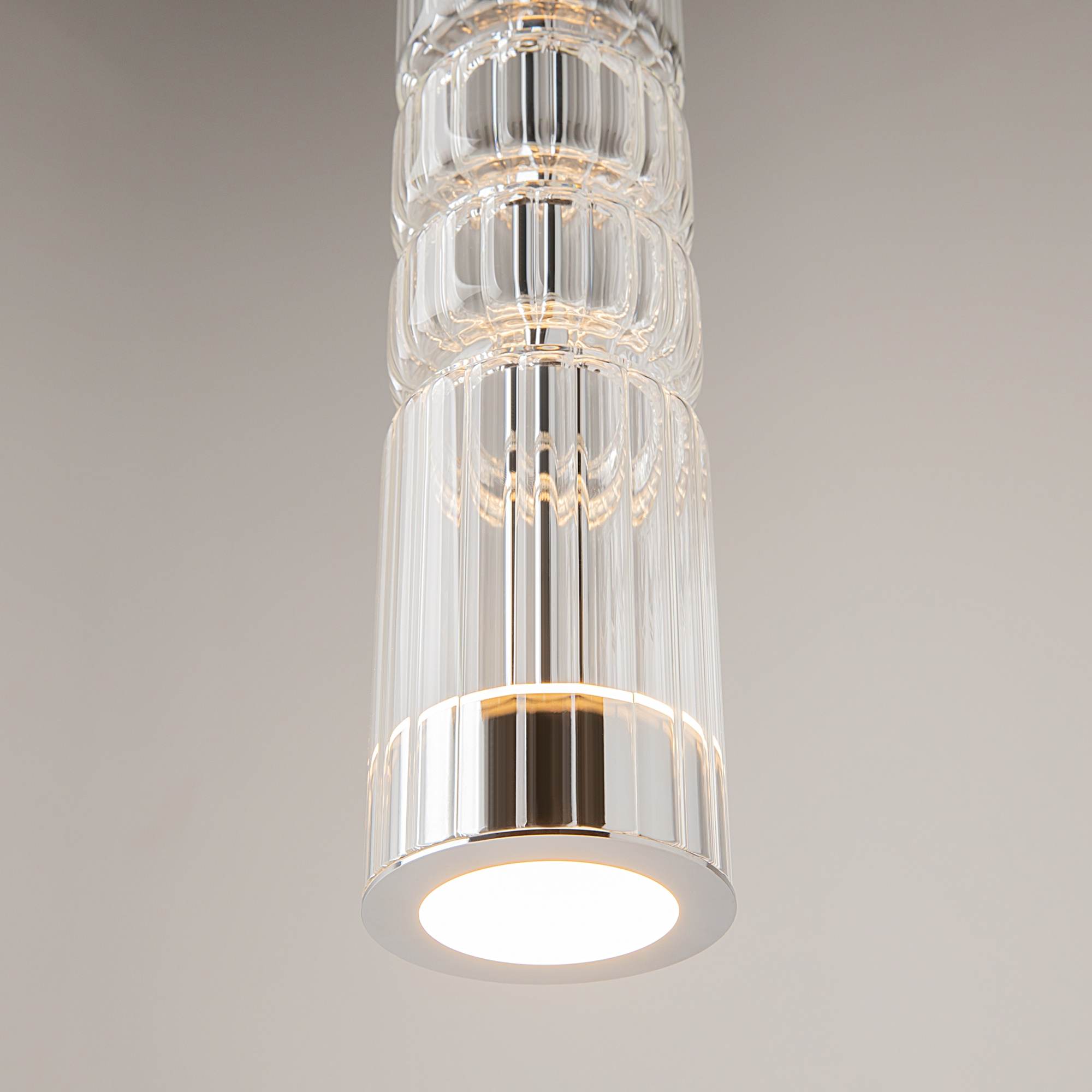 · Beschläge - Metall, Farbe - Chrom, Messing, Schwarz. Zylindrische Lampenschirme aus Glas mit vertikalem Reliefmuster in drei Farbtönen: transparent, Cognac, Rauch. Eine Metapher der antiken griechischen Tempelsäulen in Form von Leuchten. LED-Lichtquelle. Farbtemperatur 3000?.