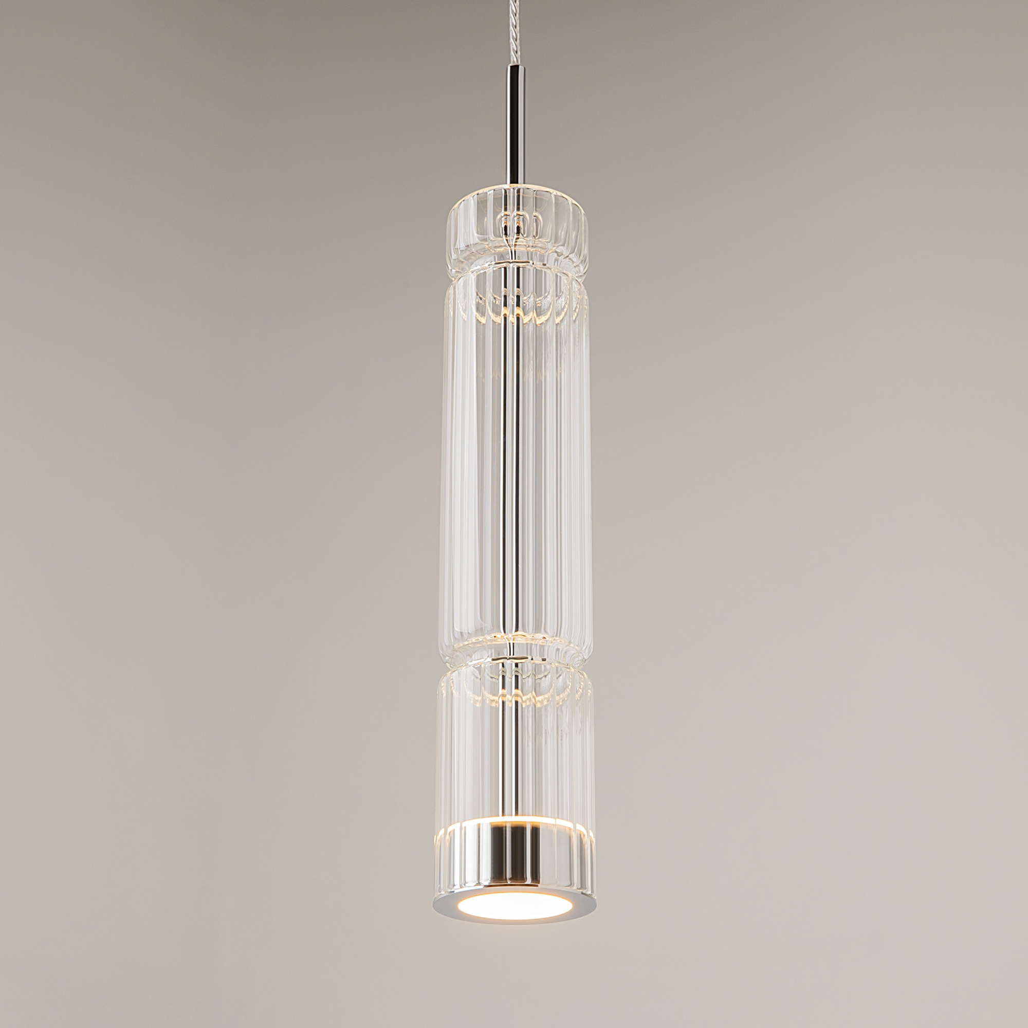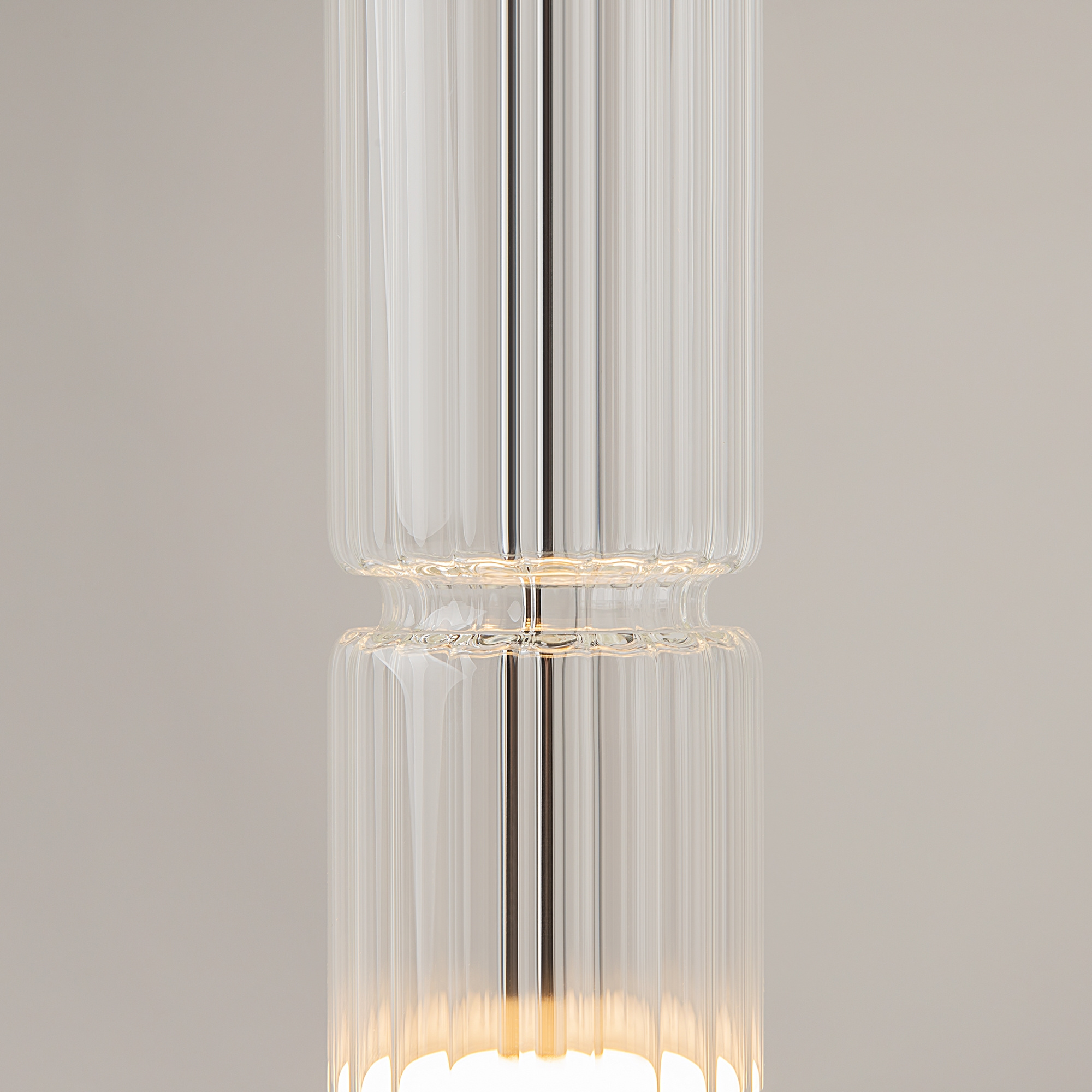 · Beschläge - Metall, Farbe - Chrom, Messing, Schwarz. Zylindrische Lampenschirme aus Glas mit vertikalem Reliefmuster in drei Farbtönen: transparent, Cognac, Rauch. Eine Metapher der antiken griechischen Tempelsäulen in Form von Leuchten. LED-Lichtquelle. Farbtemperatur 3000?.