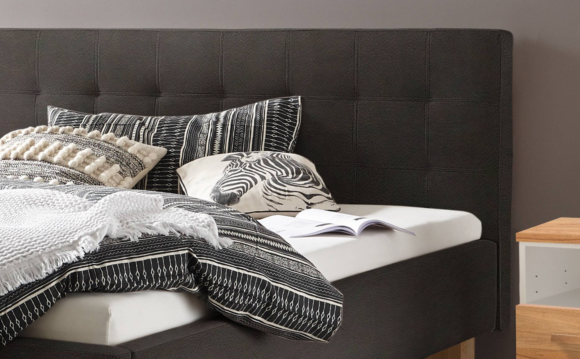 · Mit Wellenrauschen im Ohr den Träumen nah ? unser Bett Noemi besticht durch seine monumentale Erscheinung und Präsenz, wie ein Fels in der Brandung. Das gepolsterte Kopfteil und der Polsterrahmen verleihen dem Bett wiederrum eine weiche Note und lassen es als beschützenden Ruhepol agieren.