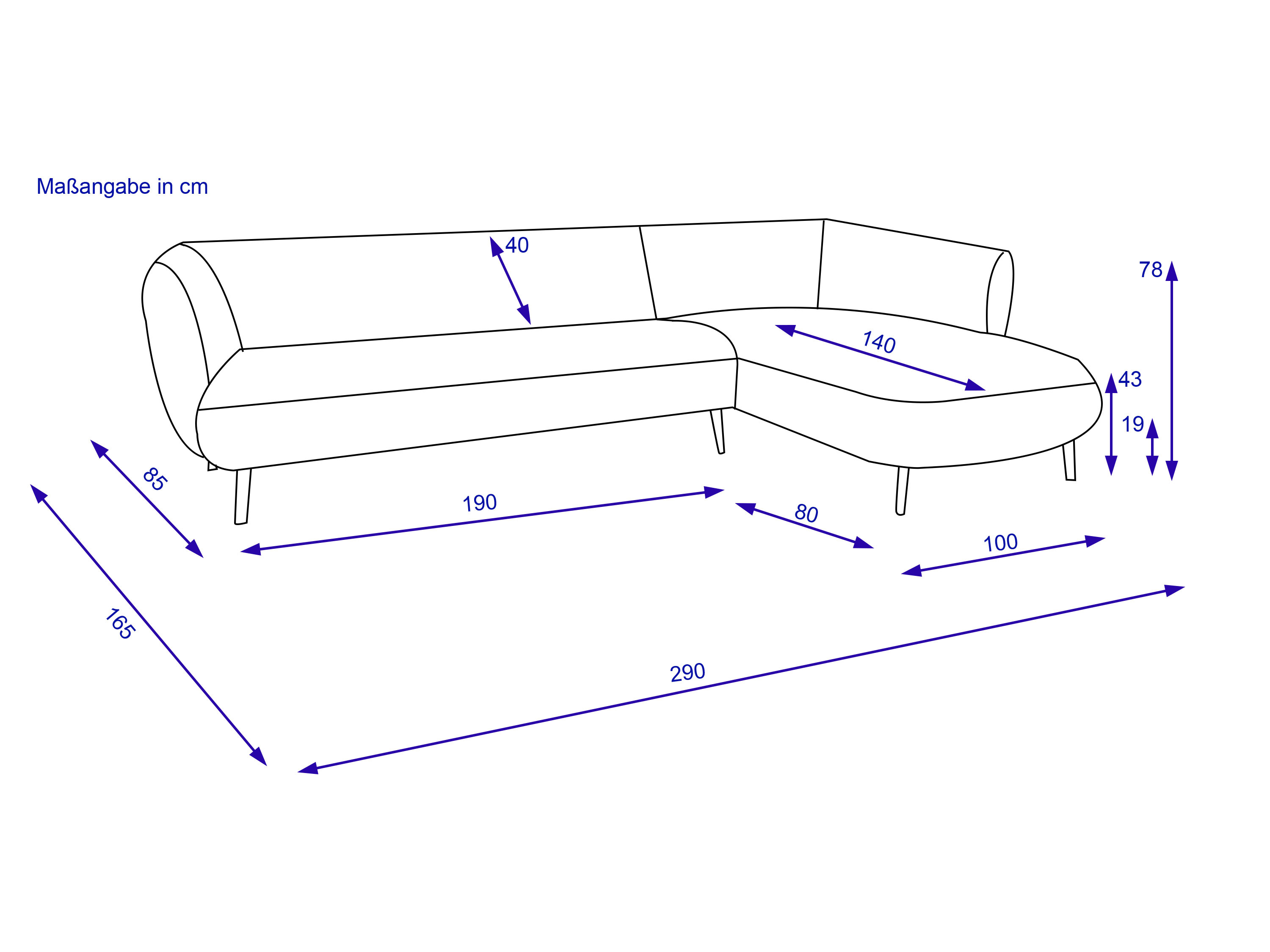 · Abschluss-Longchair rechts Sitzbreite 84 cm
