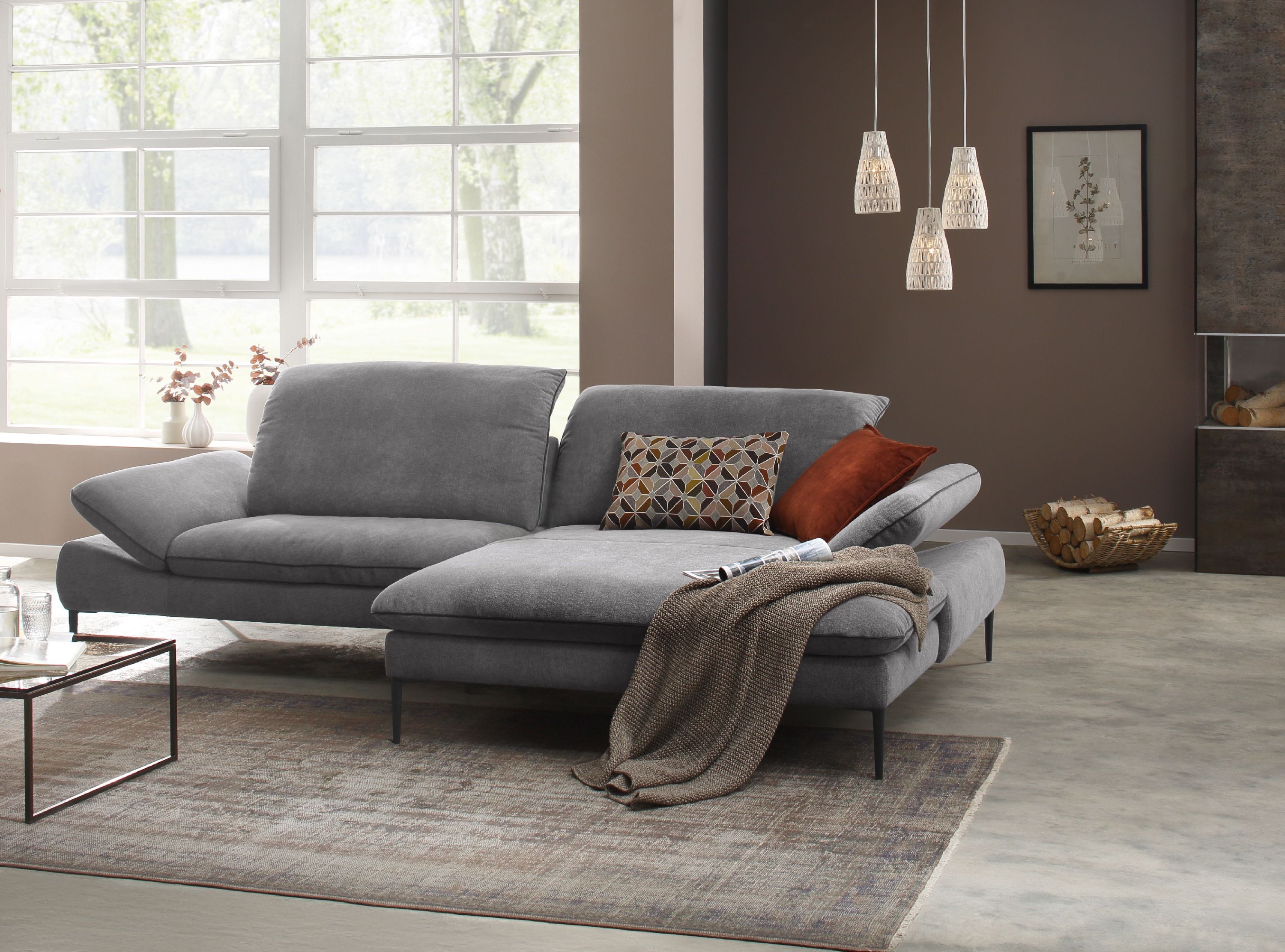 Machen Sie aus Ihrem Wohnbereich eine echte Wohlfühloase mit der Polsterecke enjoy more aus dem Hause W. Schillig. Das moderne Design lädt zu schönen und entspannten Abenden zusammen mit Ihren Liebsten ein und ist dabei ein echtes Highlight. Die Polsterecke bestehend aus einem Element mit Sitztiefenverstellung links, sowie einem Longchair groß rechts, ist mit einem besonders weichen Stoffbezug in der Farbe grau bezogen. Die Kederfarbe ist dabei schwarz. Passend zum Gesamtdesign des Sofas sind die Fü0ße aus Metall. Für höchsten Sitzkomfort sorgt die besonders legere Polsterung aus Federkern. Die Sitzhöhe beträgt dabei 45 cm, die Fußhöhe ca. 19 cm. Auf Wunsch sind klappbare Seitenteile, Kopfteilverstellungen und Kissen erhältlich.