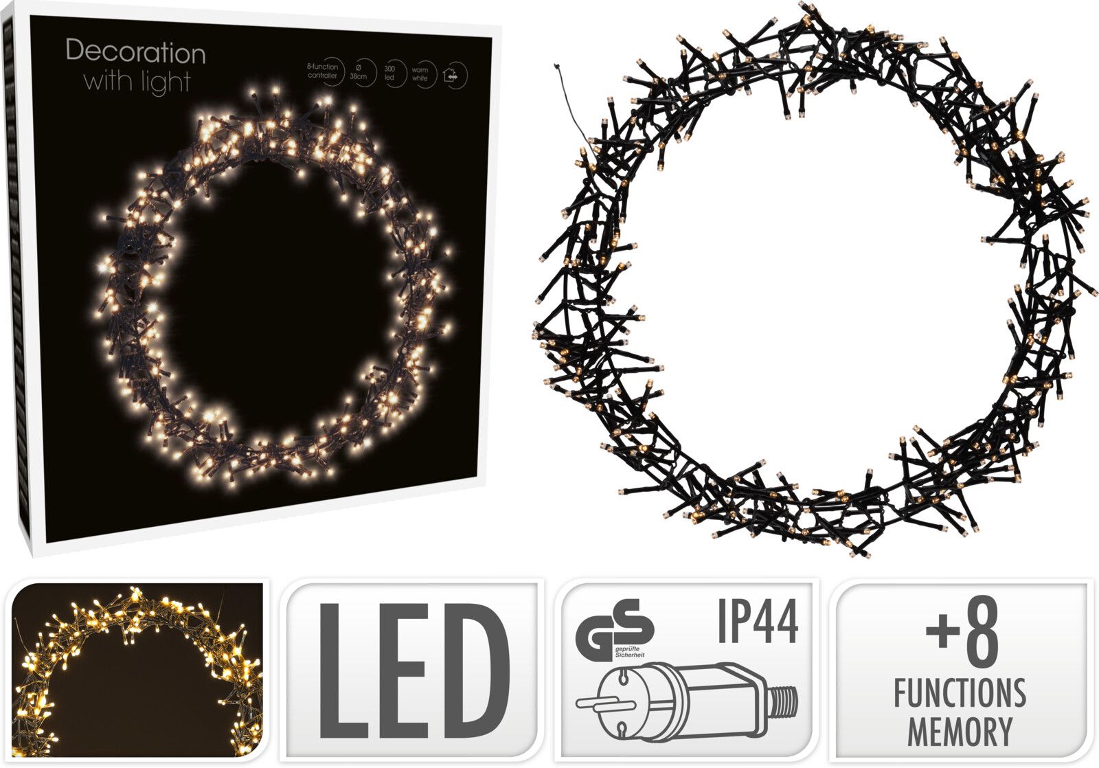 · warmweiß · mit 300 LED´s · 3 Meter Zuleitungskabel · IP44 outdoorgeeignet Der... mehr