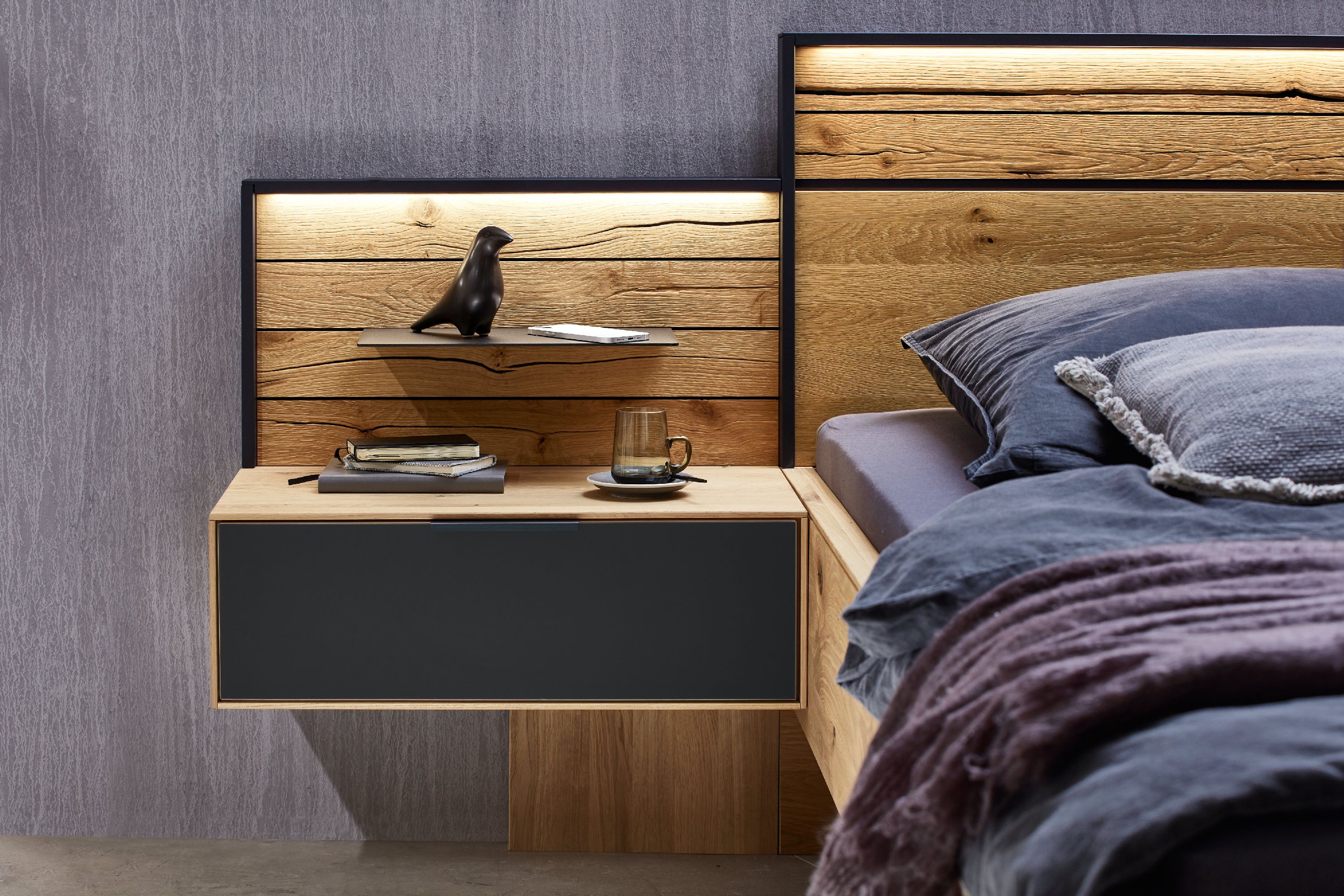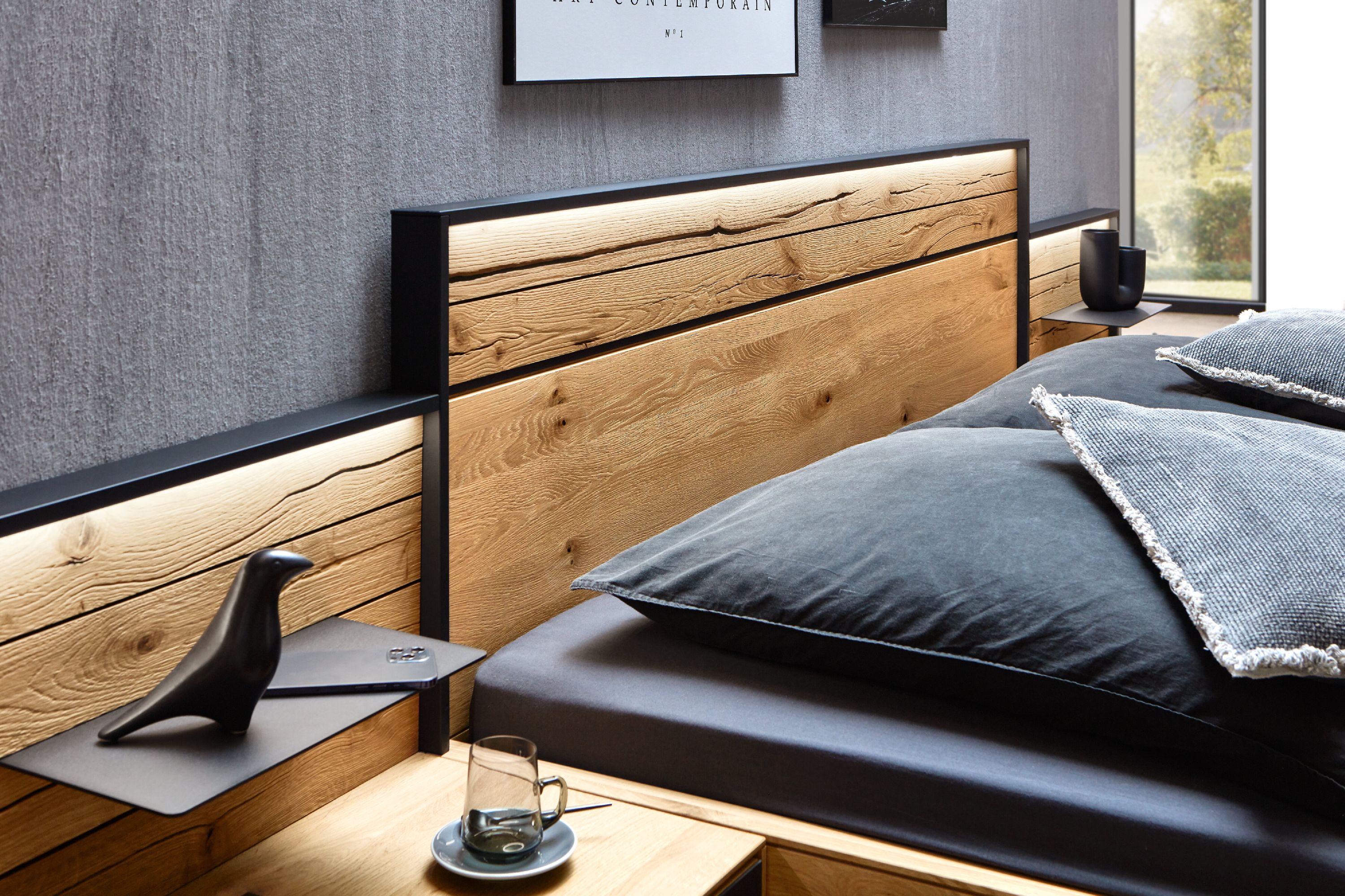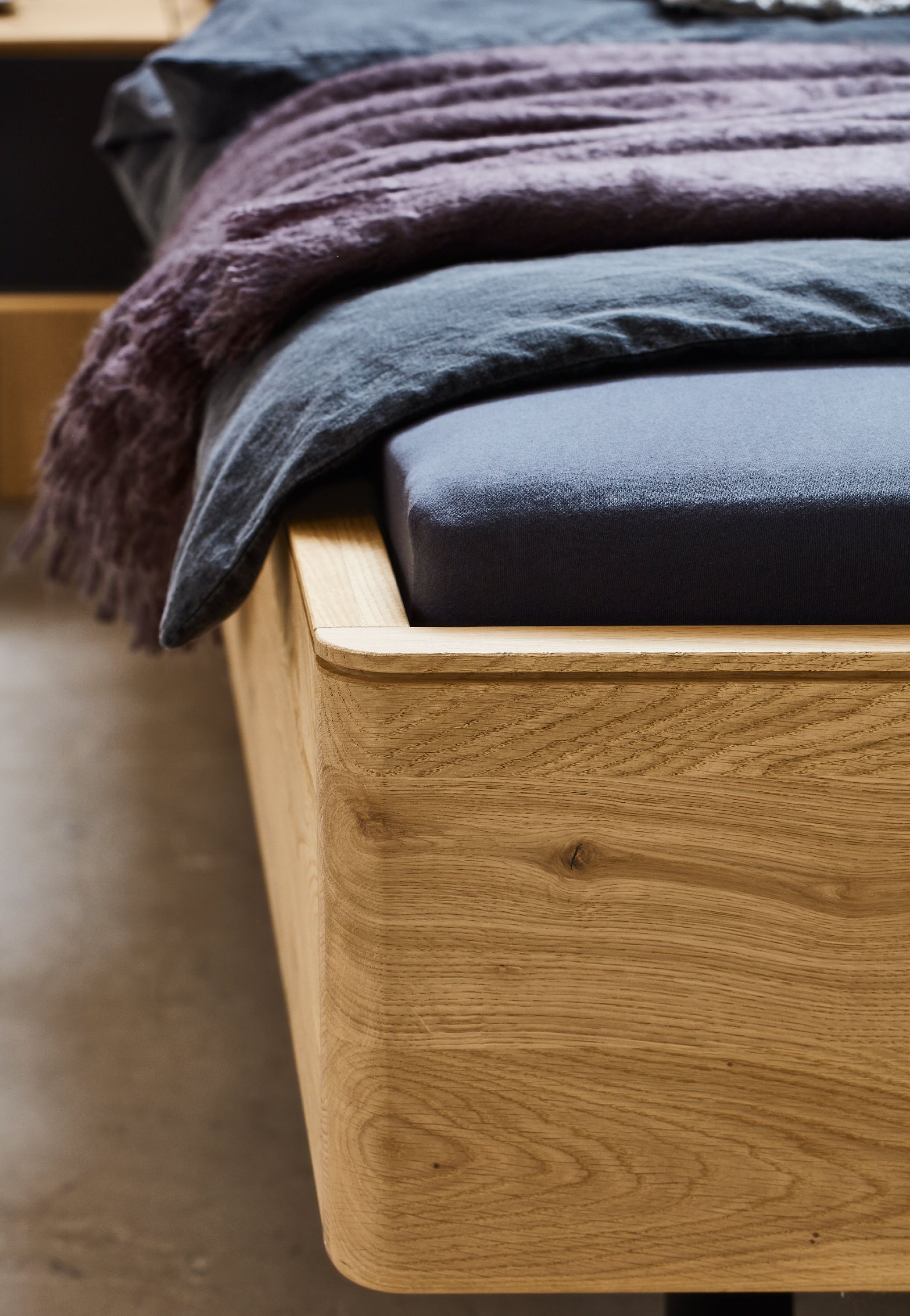 · Bett: Wildeiche massiv soft gebürstet