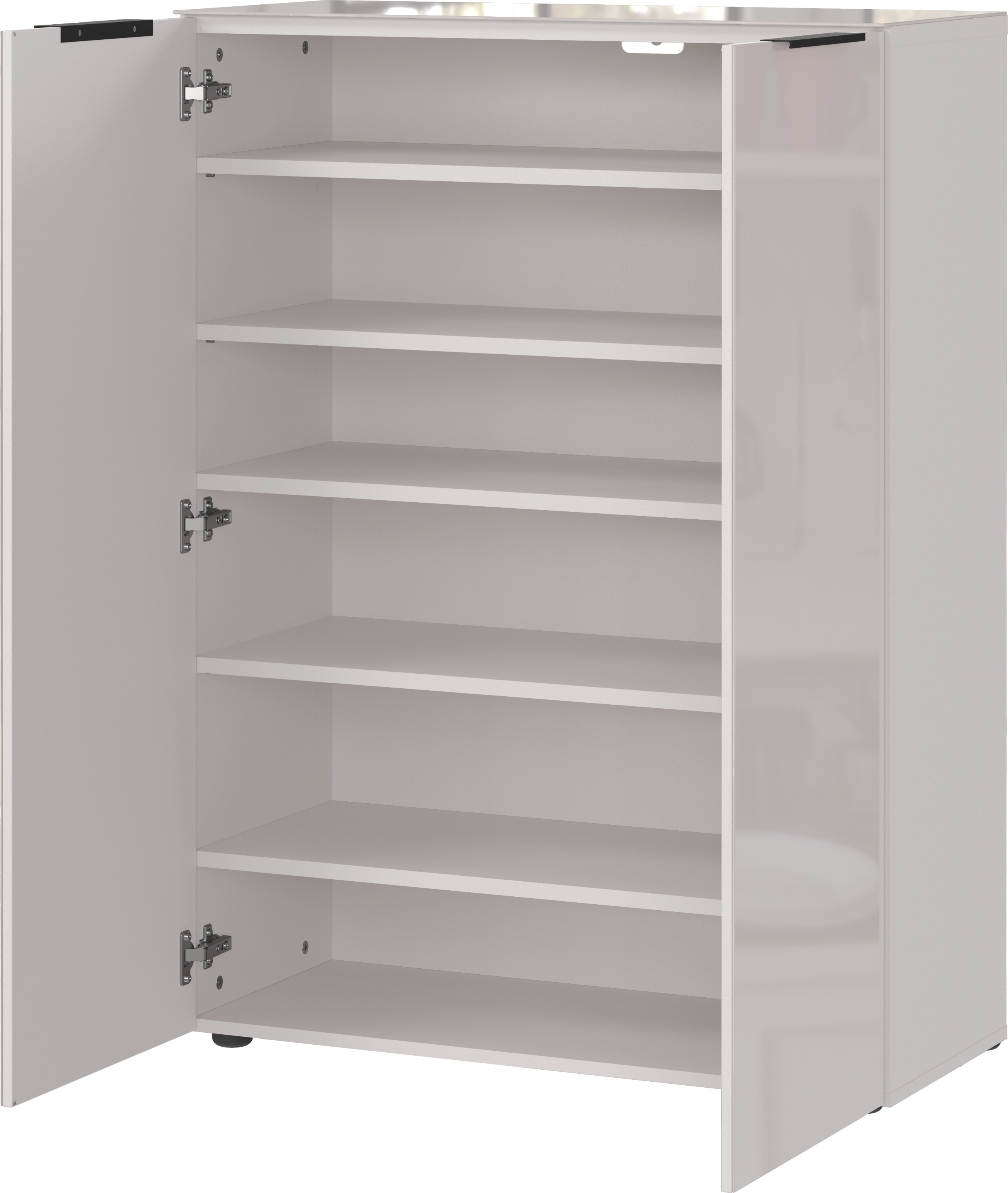 · mit einem festen und vier verstellbaren Einlegeböden