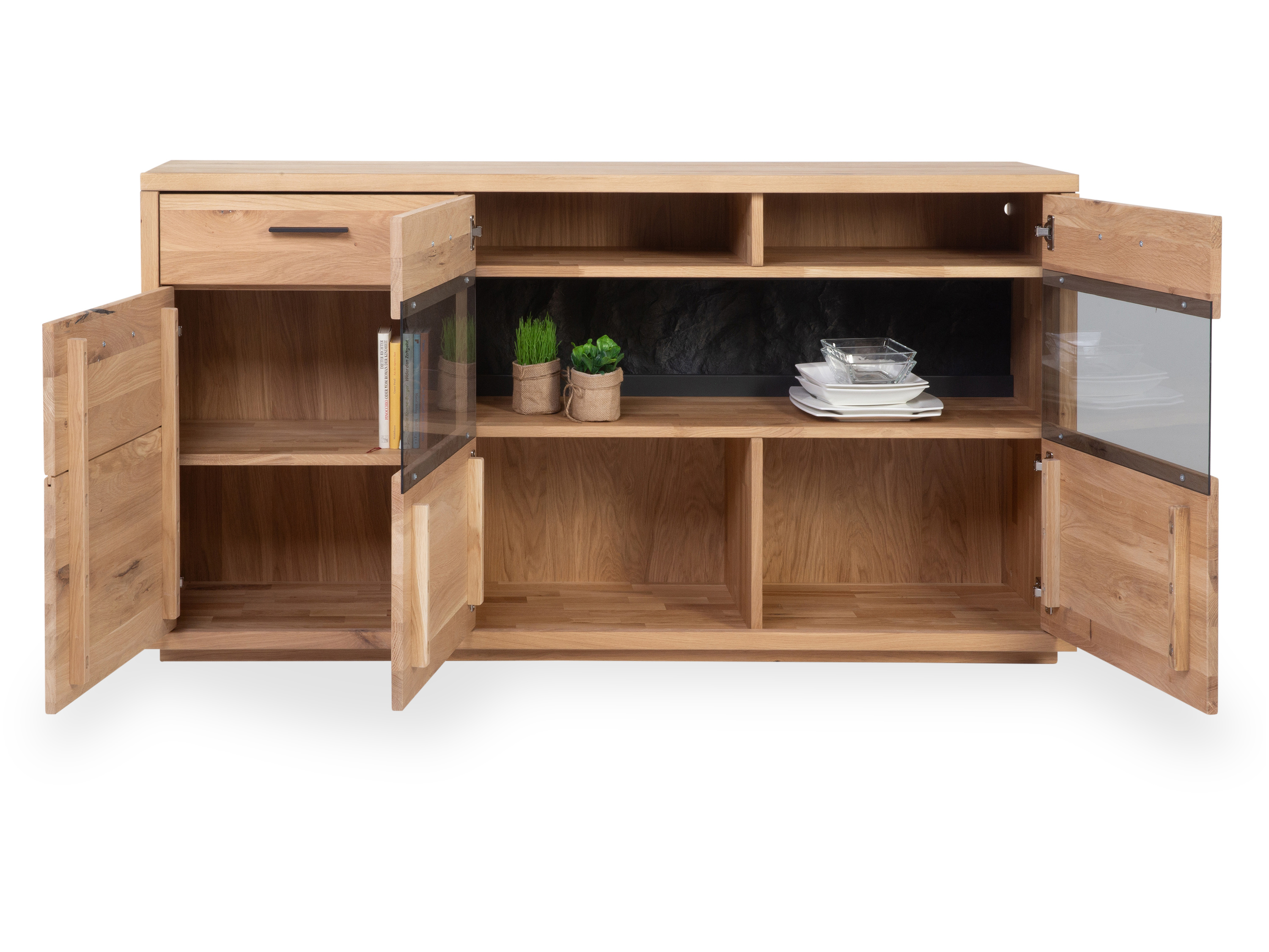 · Korpus: Wildeiche Bianco massiv keilverzinkt, Oberböden teilweise durchgehende Lamelle