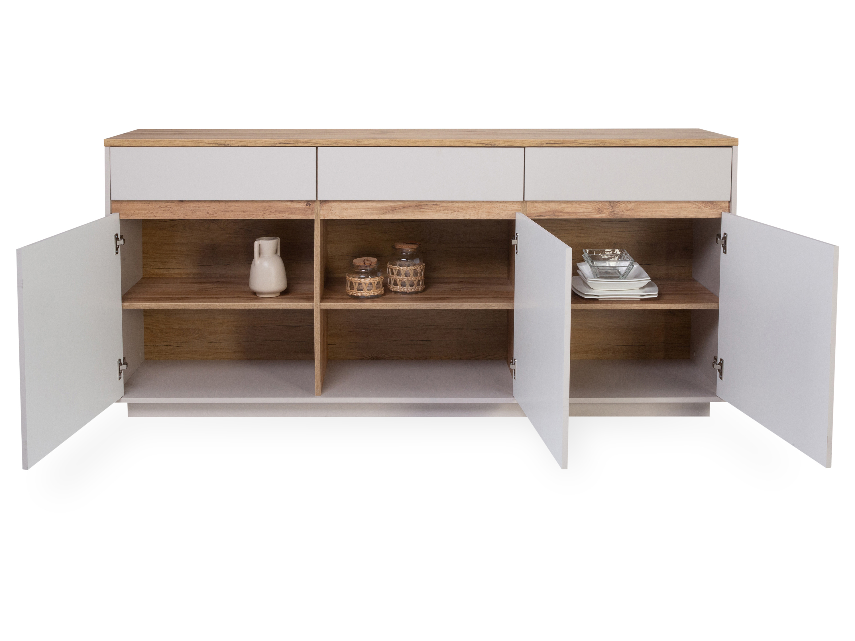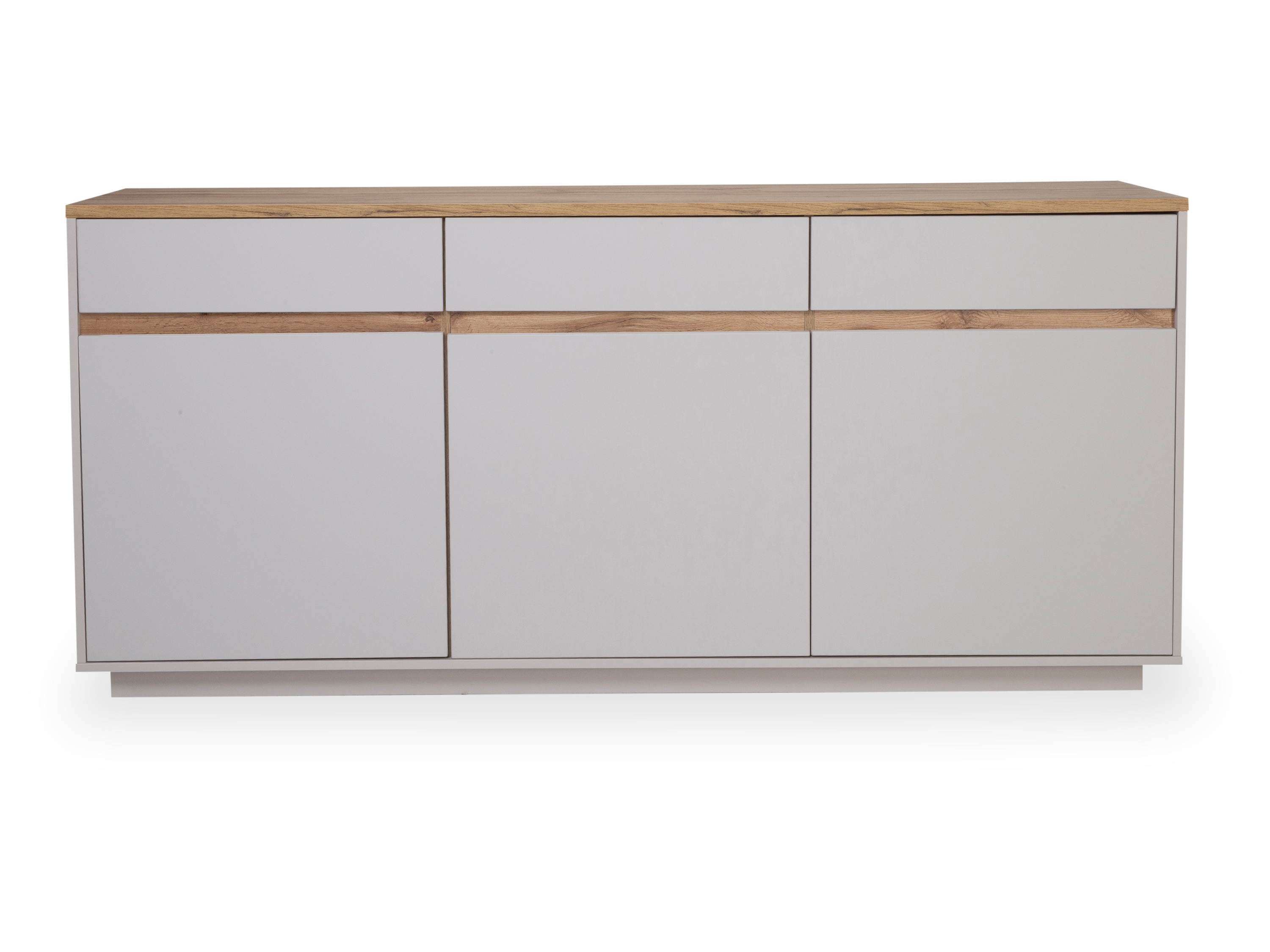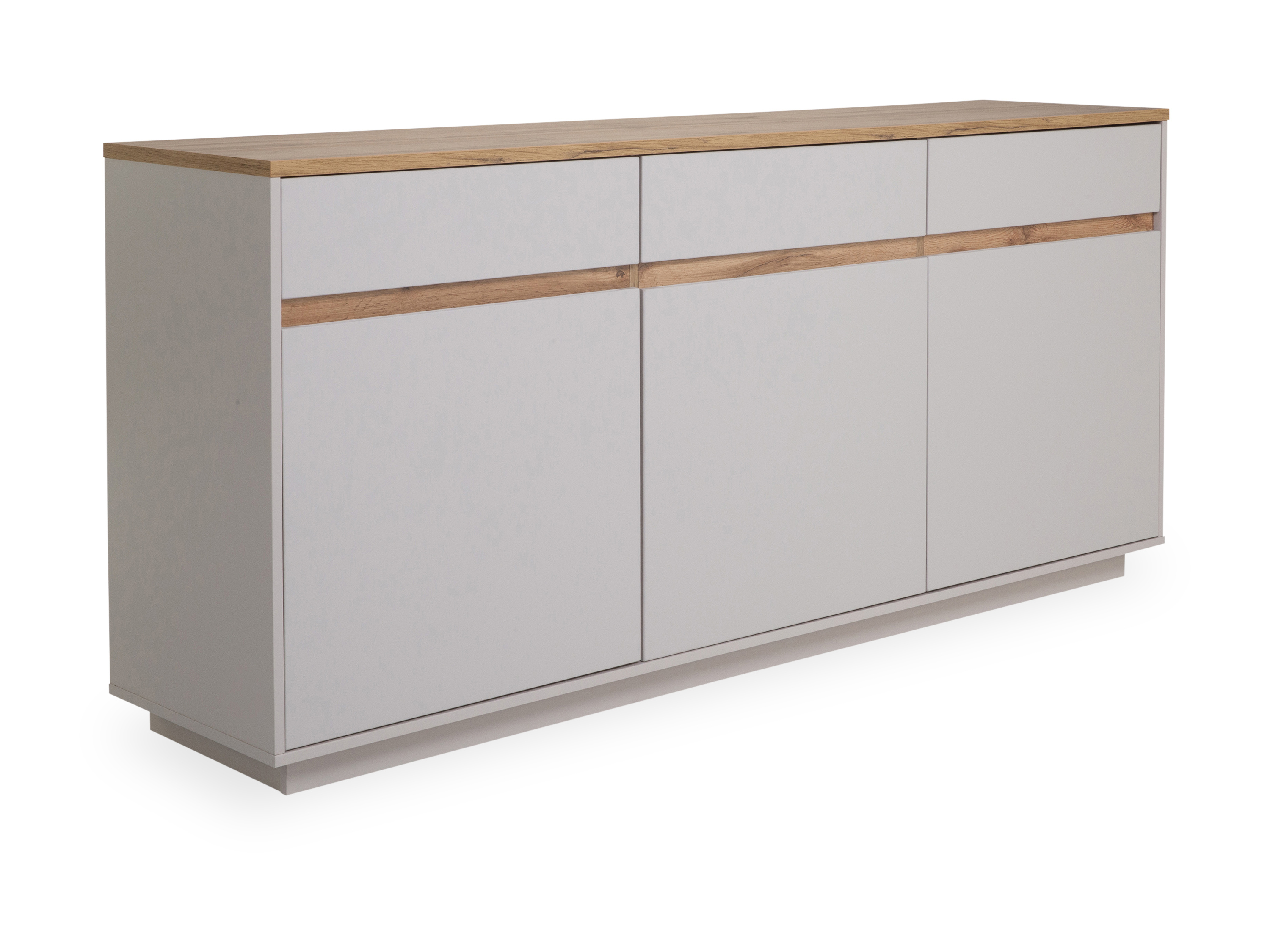 · mit drei Holztüren und drei Schubkästen