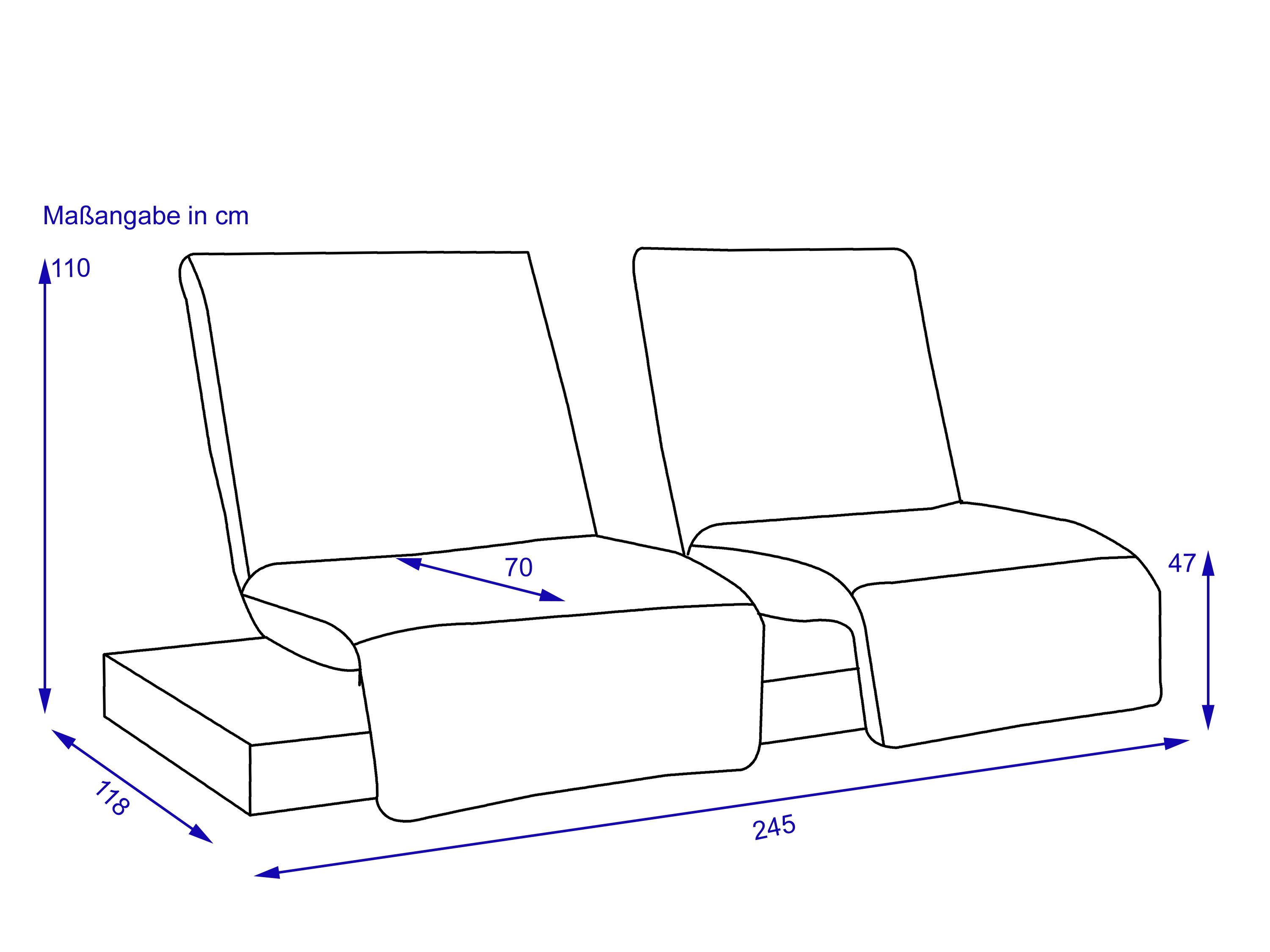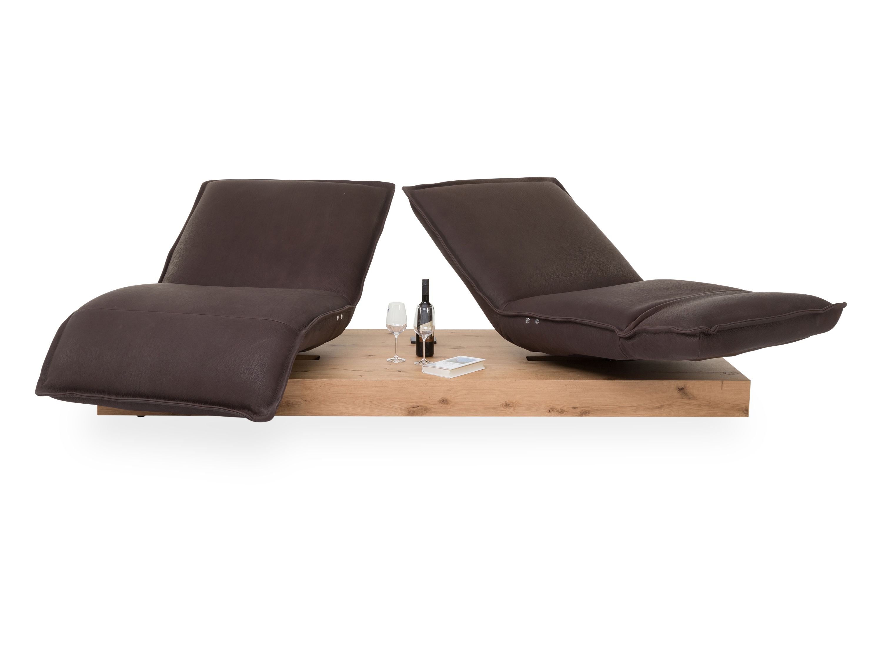 · mit verschiebbaren und drehbaren Sitzeinheiten sowie Sitzverstellung, per Motor lassen sich Fußteil und Rücken getrennt voneinander stufenlos verstellen, die Bedienung erfolgt über vier Knöpfe außen am Sitz