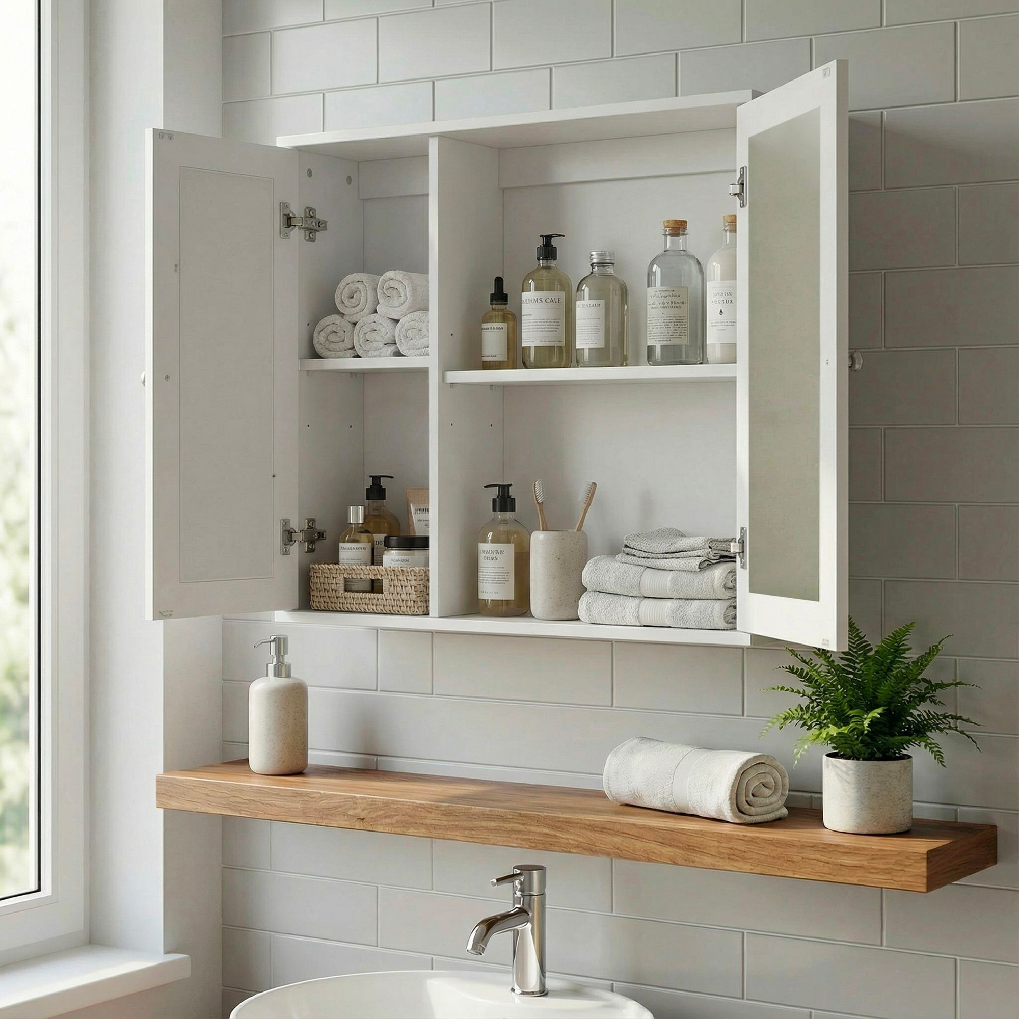 · Durchdachter Stauraum: Hinter den beiden Türen findest du Platz für Pflegeartikel, Kosmetik oder Alltagsutensilien ? ordentlich verstaut und jederzeit griffbereit.