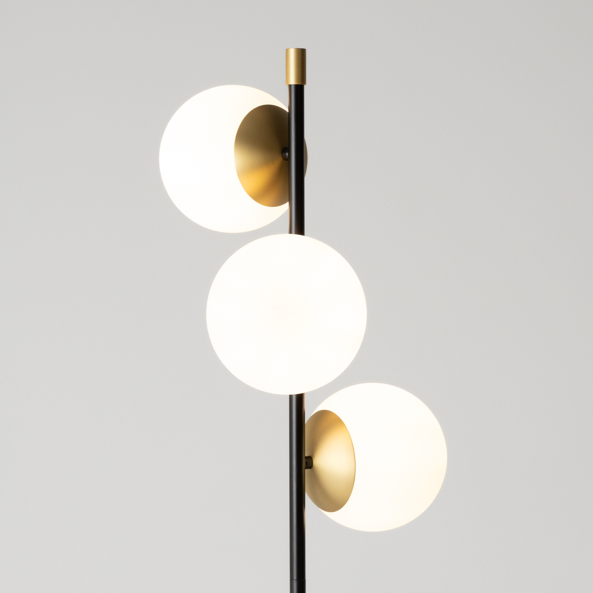 · schwarz und gold · Metall · Metallbeschläge in mattem Gold. Kugelförmige Lampenschirme aus... mehr