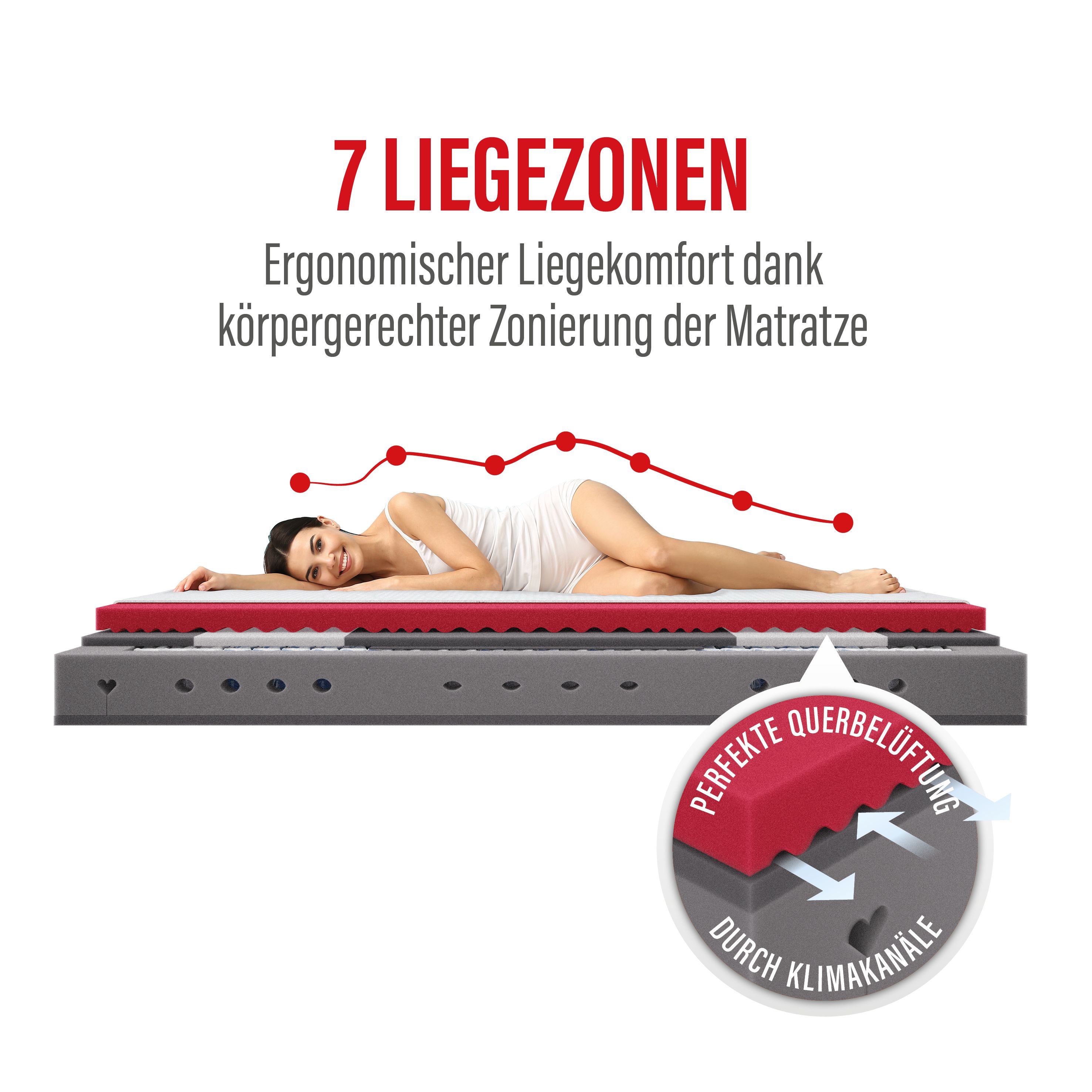 · 7 ergonomischen Liegezonen sorgt für die körpergerechte Lagerung der Wirbelsäule