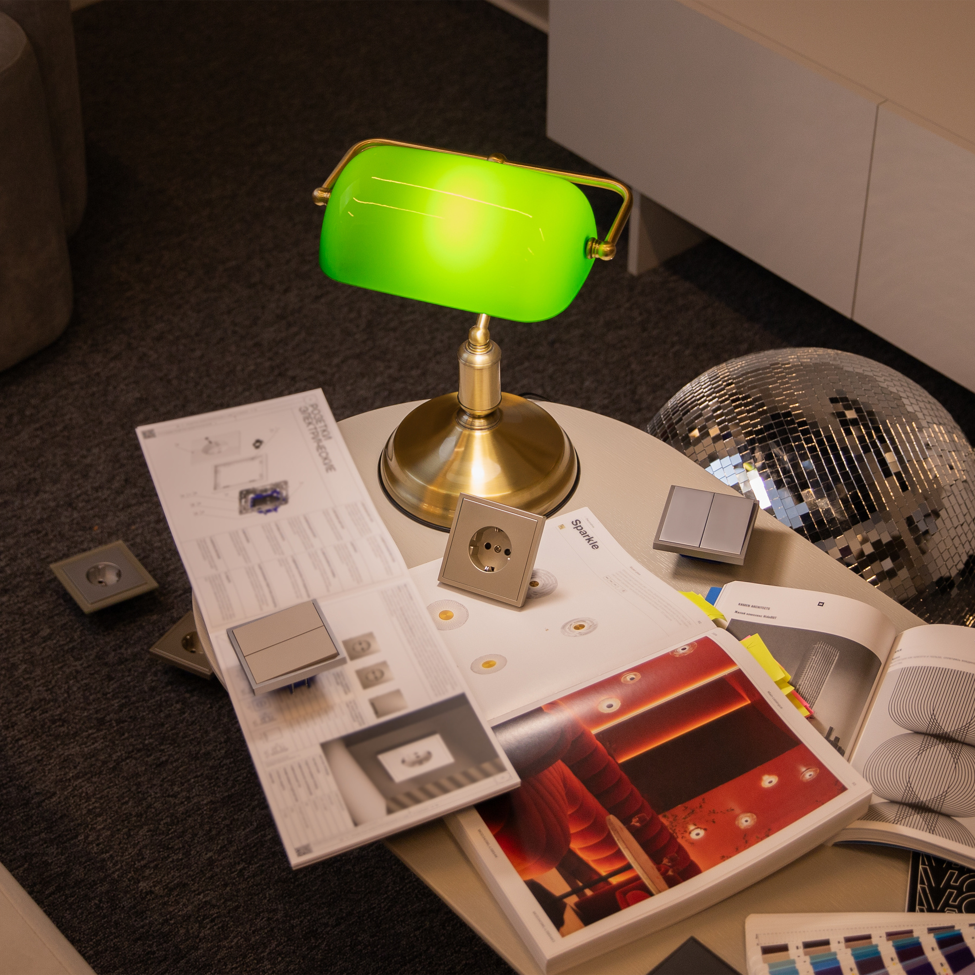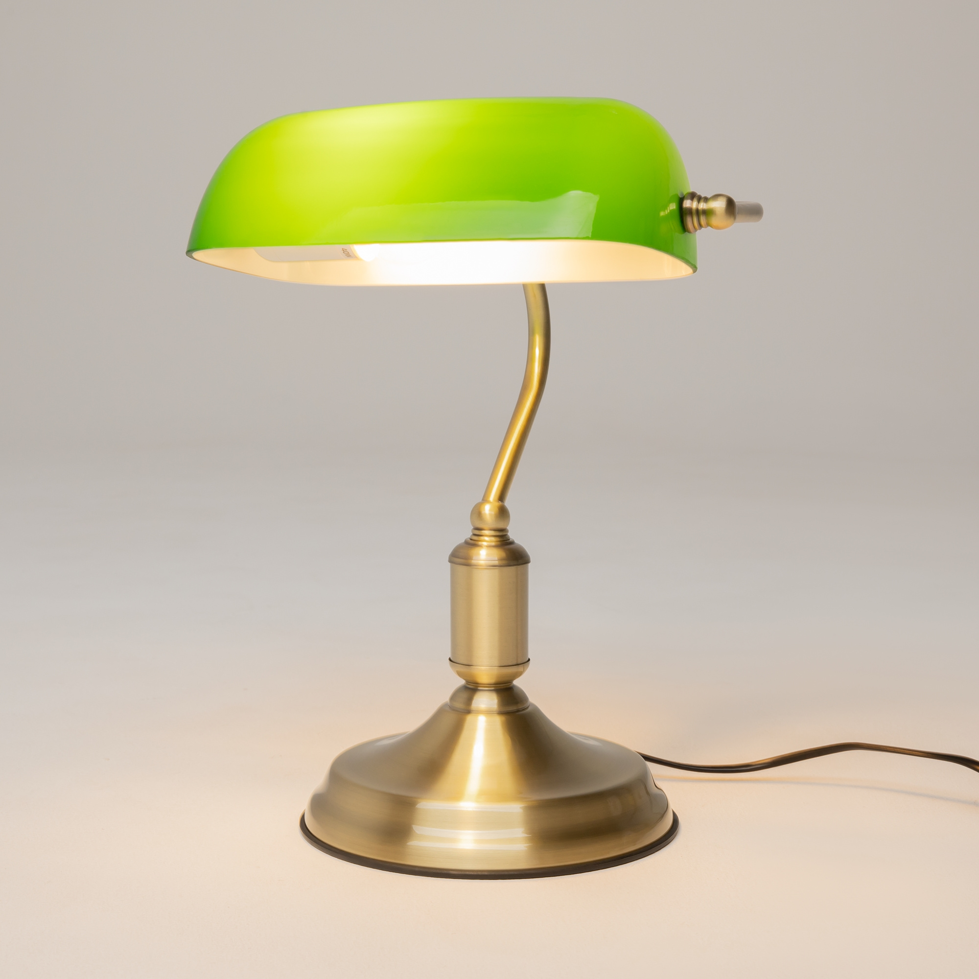 · Material der Beschläge: Metall, Farbton: Messing. Lampenschirm aus kombiniertem Glas. Farbton: Grün. Von innen weiß gefärbt. Klassische Silhouette. Lichtquelle: Leuchtmittel mit einer Fassung ?27.