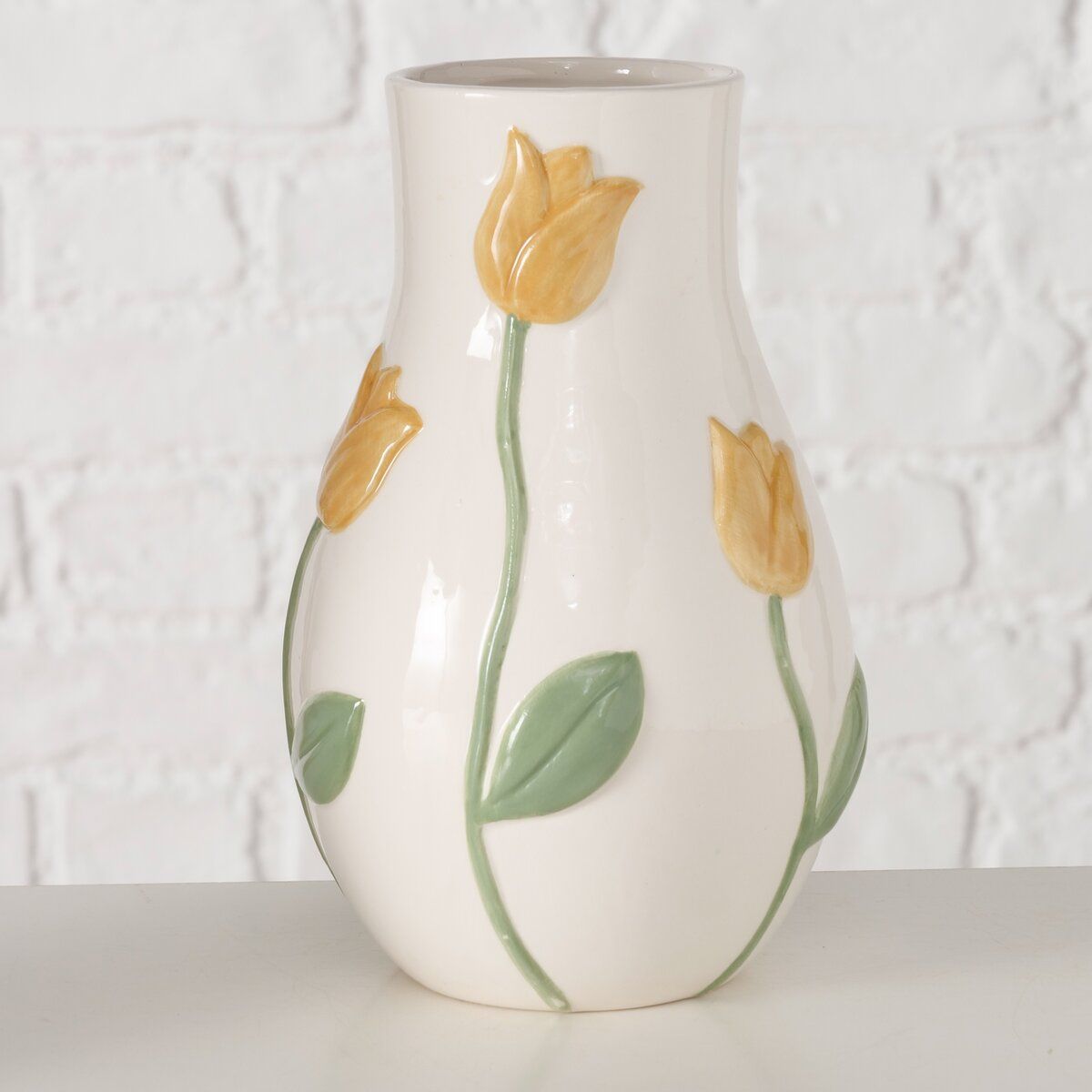 Holen Sie sich das gewisse Etwas für Ihr Zimmer und seien Sie sicher, dass diese Vase optimal in Ihren Einrichtungsstil passt. Das Deko-Element macht sich hervorragend als Dekoration für Ihre Einrichtung, ist ein wahrer Eye-Catcher und lässt sich problemlos in die Räumlichkeit Ihrer Wahl integrieren. Der gelungene Look passt wunderbar zu zahlreichen anderen Deko-Accessoires wie auch Wohnumgebungen und kann leicht in nahezu jeden Raum eingefügt werden. Egal, wo Sie ihn aufstellen, der Dekorationsartikel sorgt für ein ebenso angenehmes wie behagliches Ambiente in Ihrem Zuhause. Er misst in der Höhe insgesamt 20 cm. Holen Sie sich dieses dekorative Element, welches garantiert zum Blickfang wird, und lassen Sie Ihre Gäste staunen.