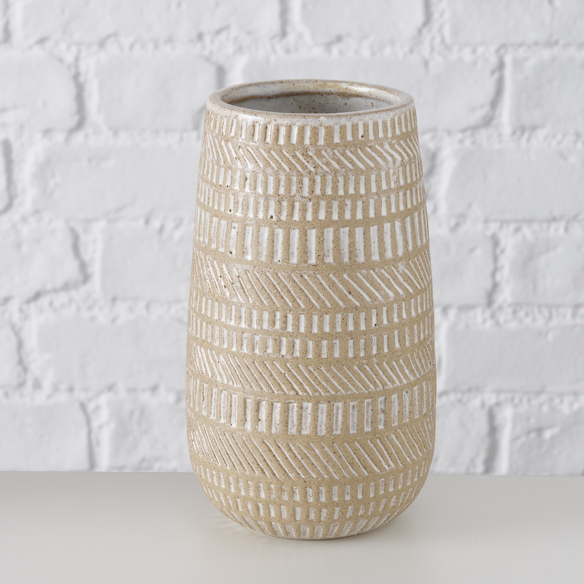 Egal, welches Zimmer Sie gestalten, Sie bringen mit dieser Vase mehr Kreativität in Ihre Dekoration. Der Dekoartikel ist ein hübsches Accessoire, mit dem Sie die Einrichtung jedes Raumes in Ihrem Zuhause optimal ergänzen können. Die ansprechende Gestaltung harmoniert gut mit vielen anderen Deko-Accessoires wie auch Wohnkonzepten und lässt sich daher ohne Weiteres in beinahe jeden Raum einfügen. Der Dekoartikel sieht nicht nur geschmackvoll aus, sondern sorgt auch für eine einladende Atmosphäre in Ihrem Interieur. Die Höhe bemisst sich auf insgesamt 19 cm. Sie setzen mit diesem Dekoelement einfach neue Akzente und verleihen Ihrer Einrichtung genau den Touch, den Sie sich wünschen.