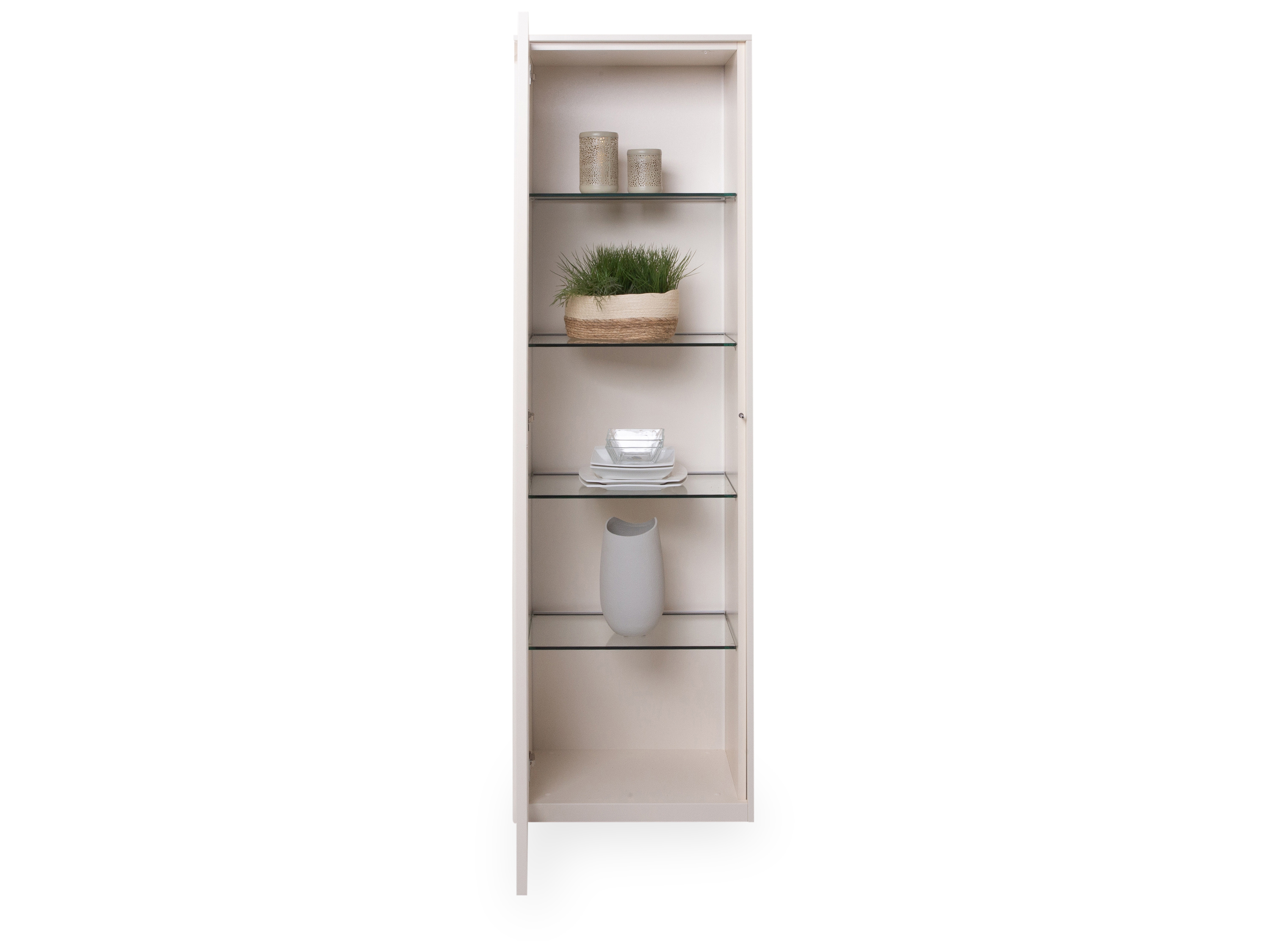 · mit einer Glastür und vier Glasböden