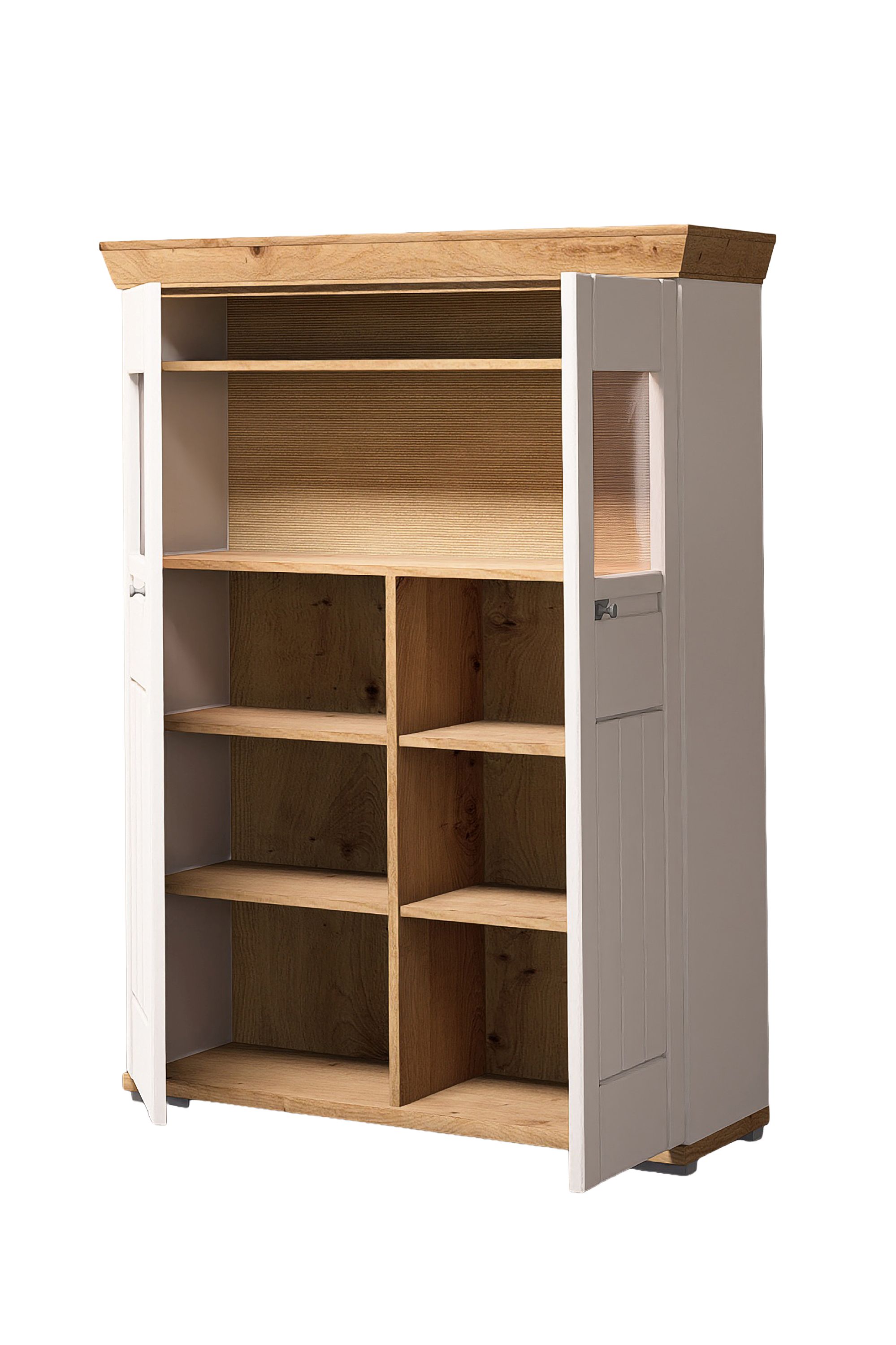 · mit zwei Glas-/Holztüren