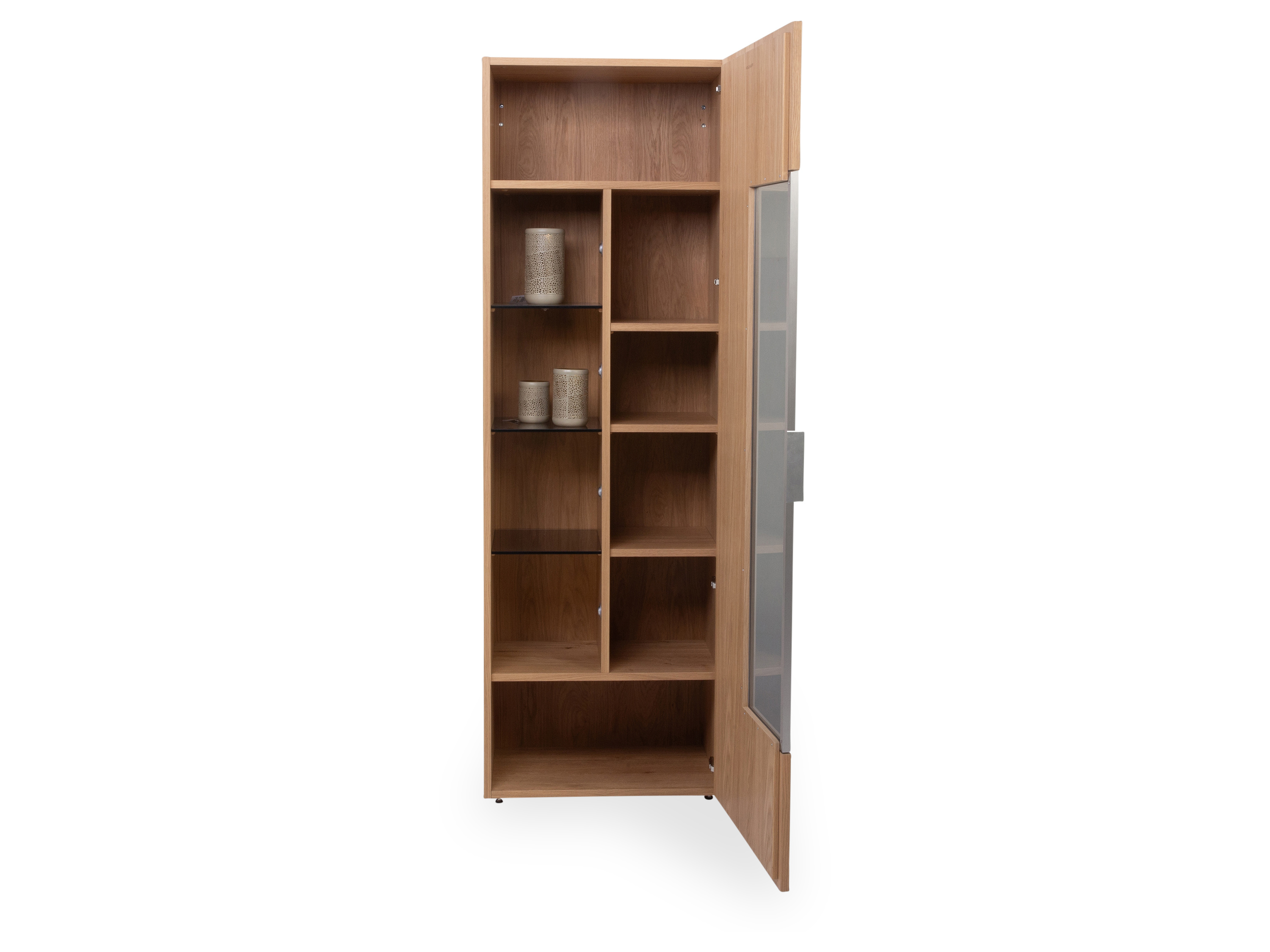 · Mitte je 3 Holzeinlegeböden und 3 Glaseinlegeböden in Parsol bronce